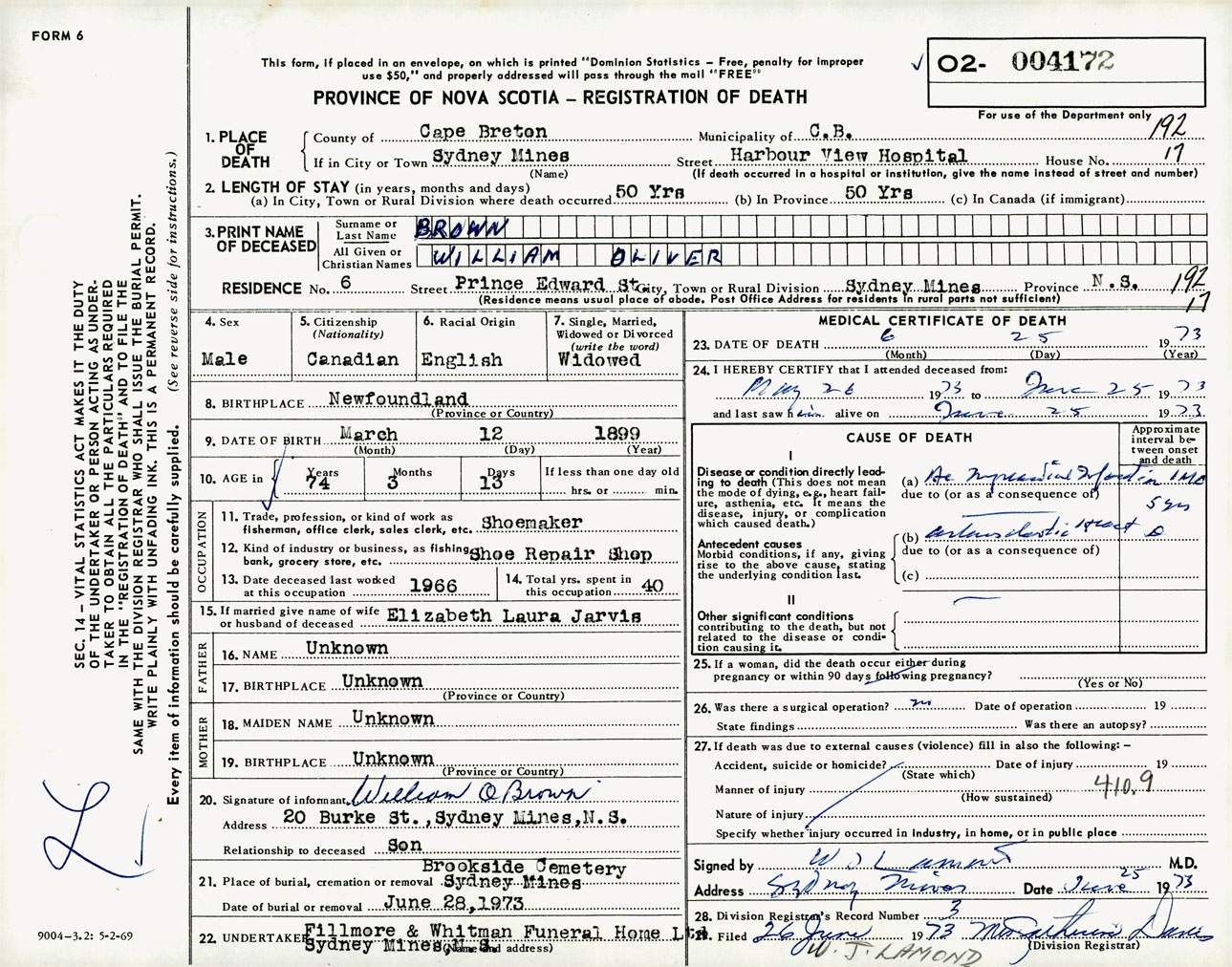 Male Death Registration: Year: 1973 number: 4172