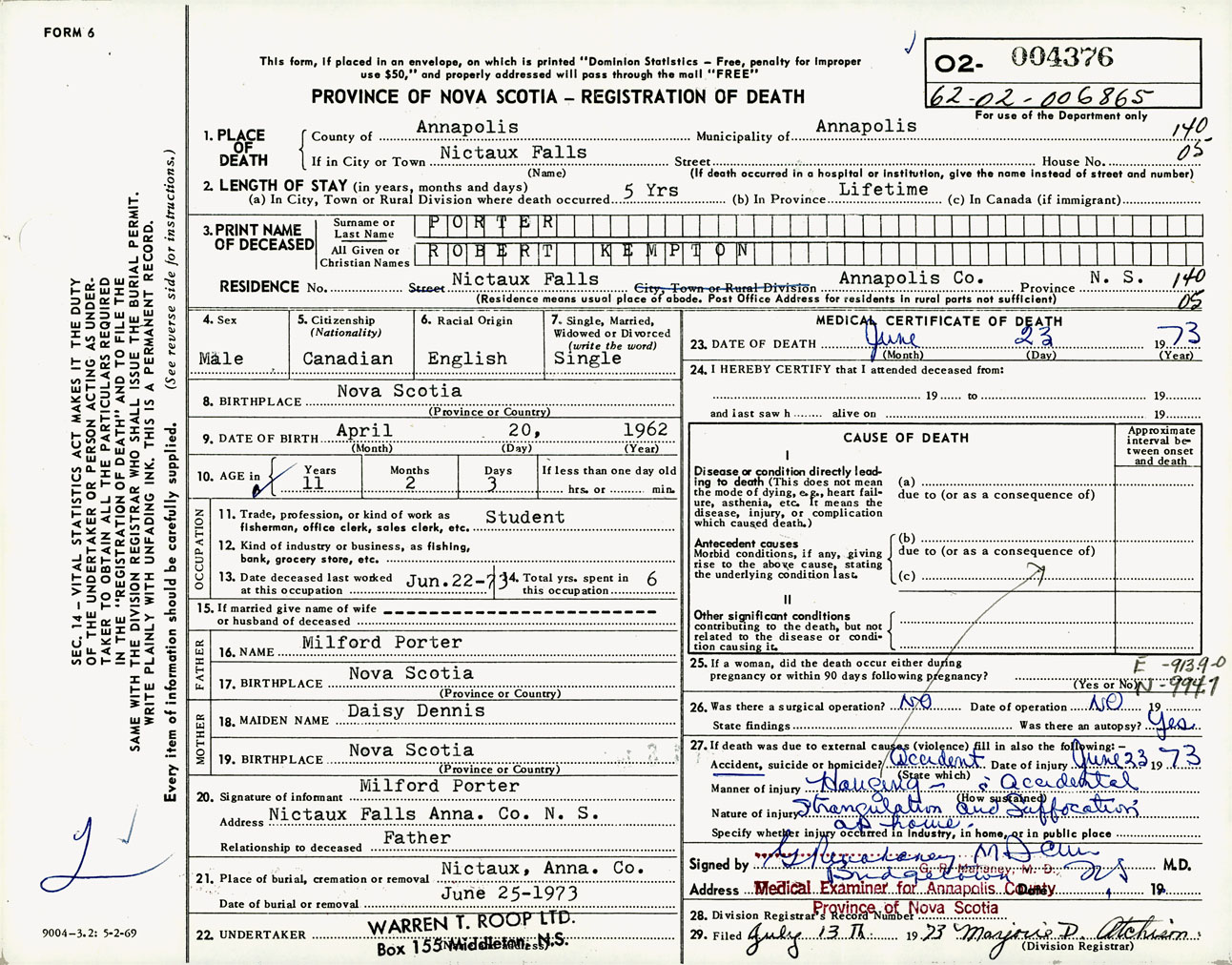 Male Death Registration: Year: 1973 number: 4376
