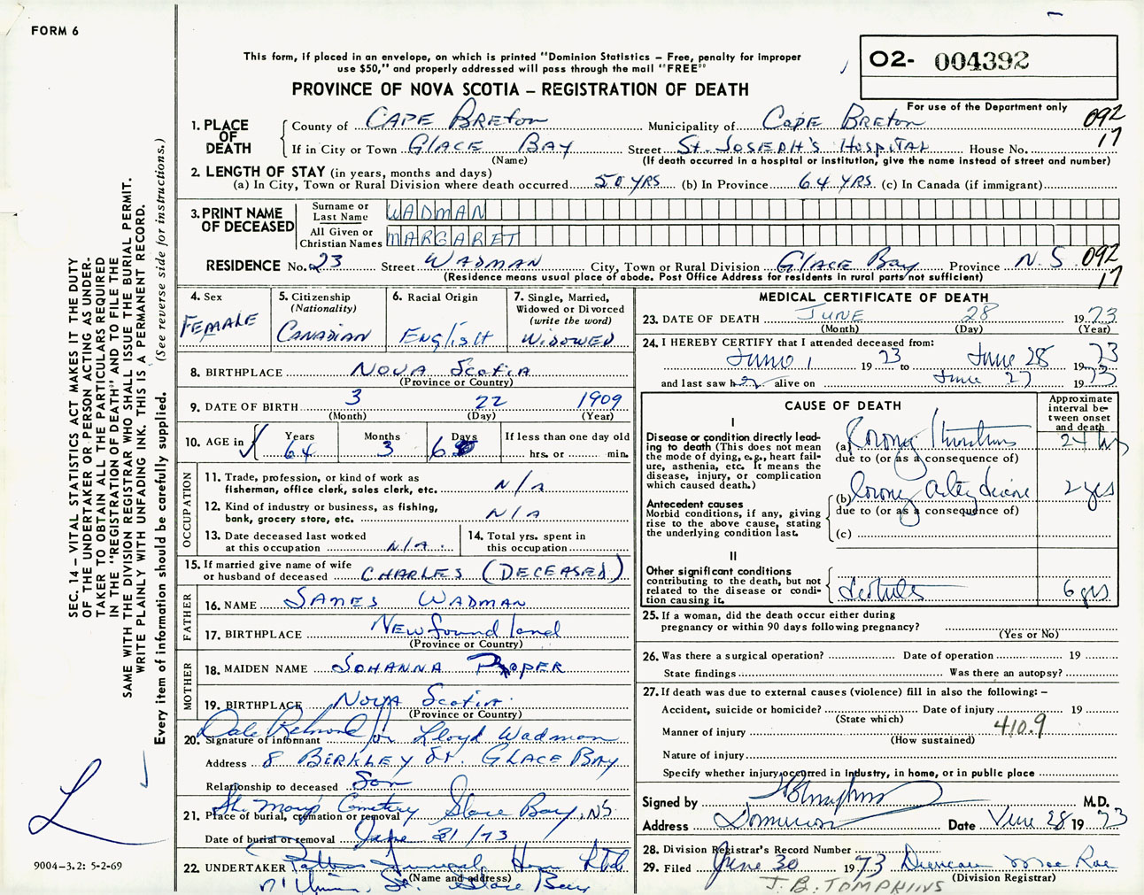 Nova Scotia Archives — https://archives.novascotia.ca/vital-statistics/death/?ID=510220