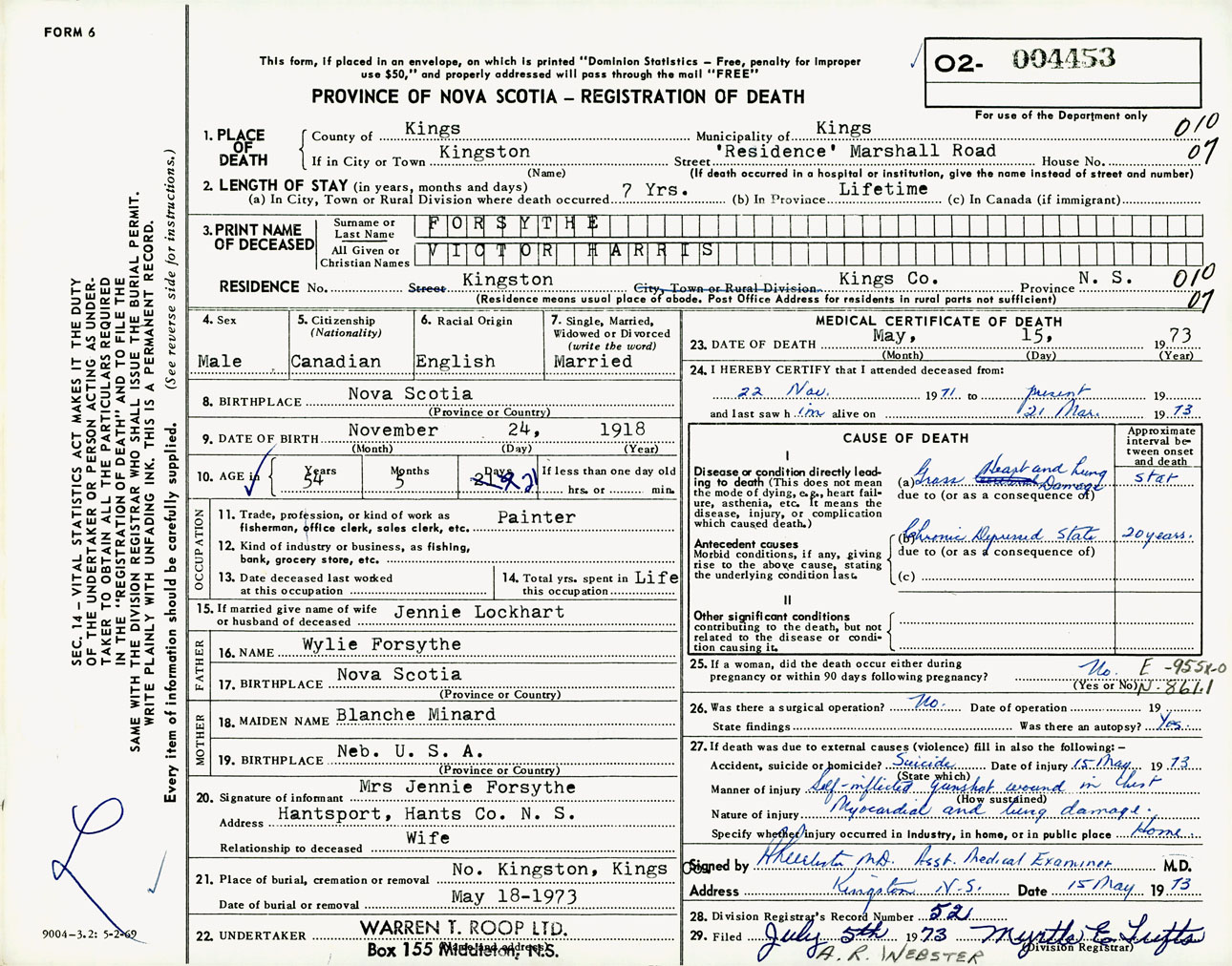 Male Death Registration: Year: 1973 number: 4453