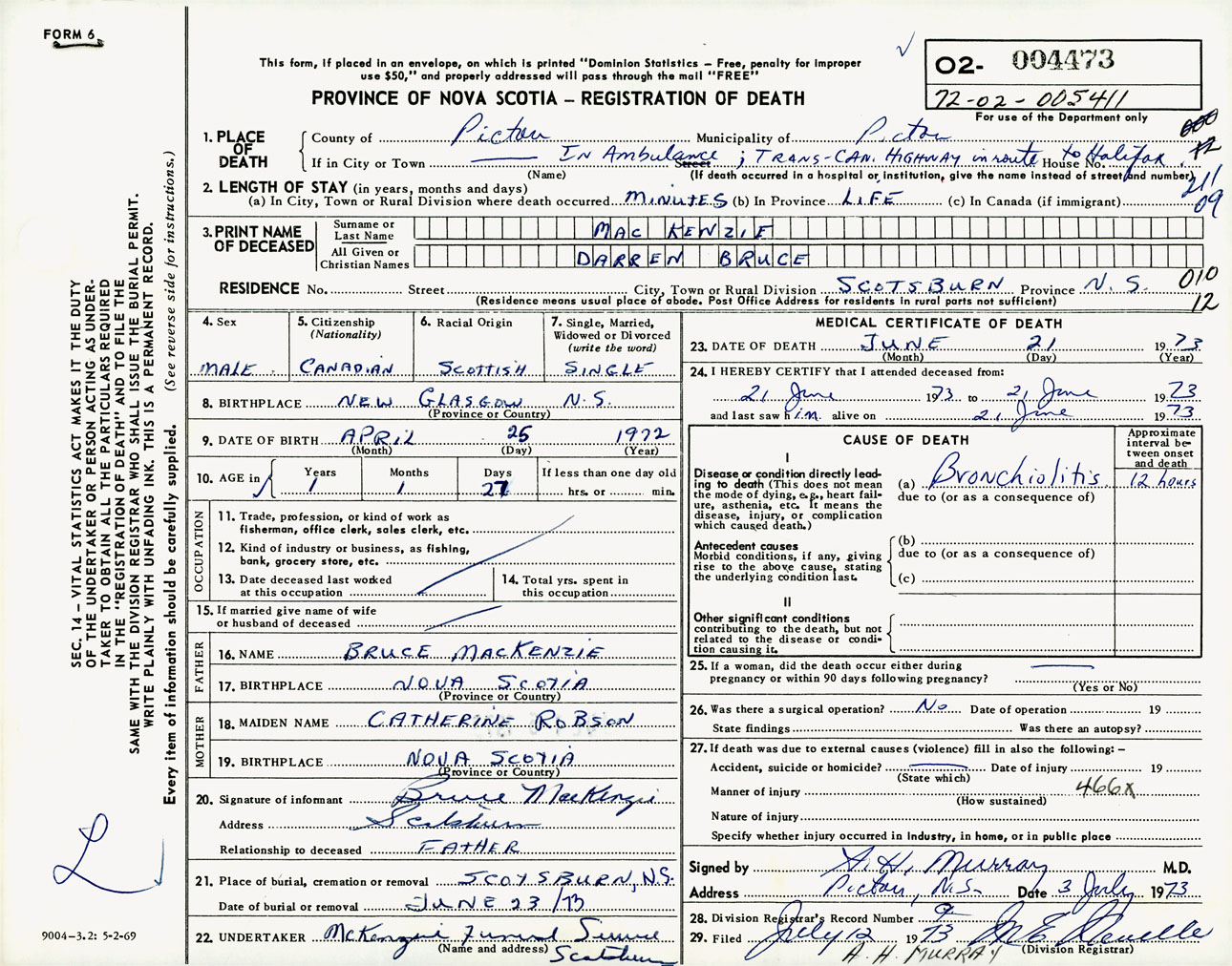 Male Death Registration: Year: 1973 number: 4473