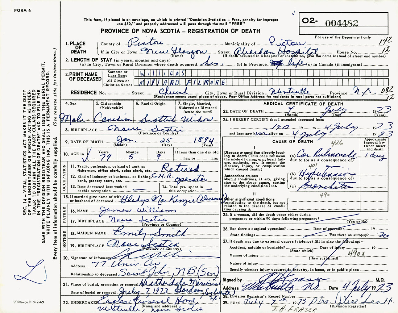 Male Death Registration: Year: 1973 number: 4482