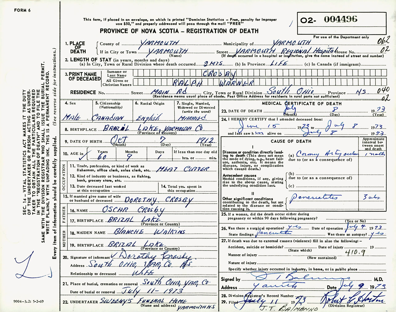 Male Death Registration: Year: 1973 number: 4496