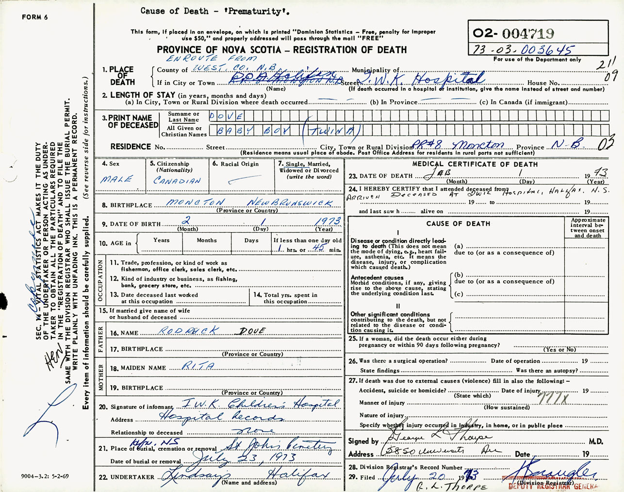 Male Death Registration: Year: 1973 number: 4719