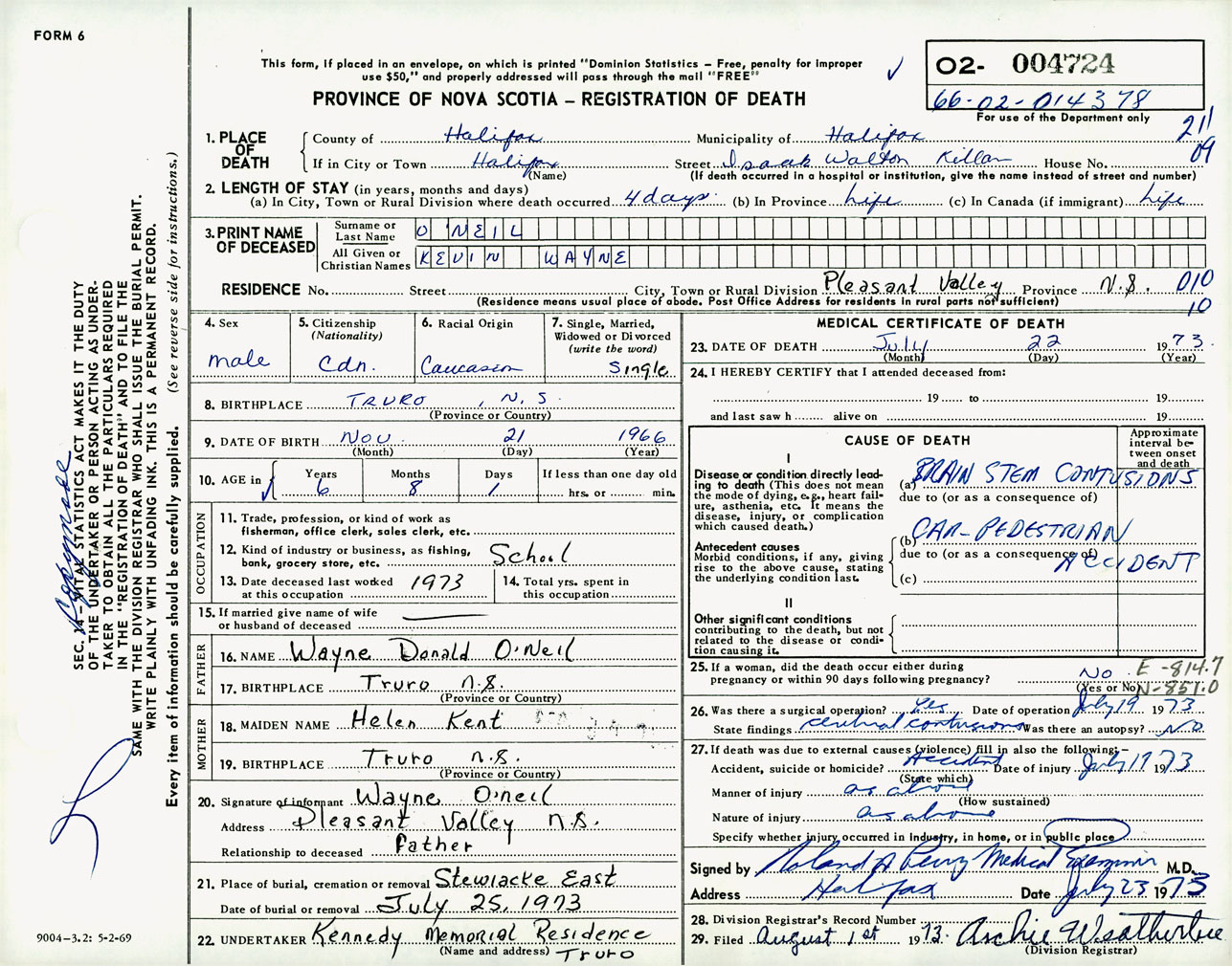 Male Death Registration: Year: 1973 number: 4724