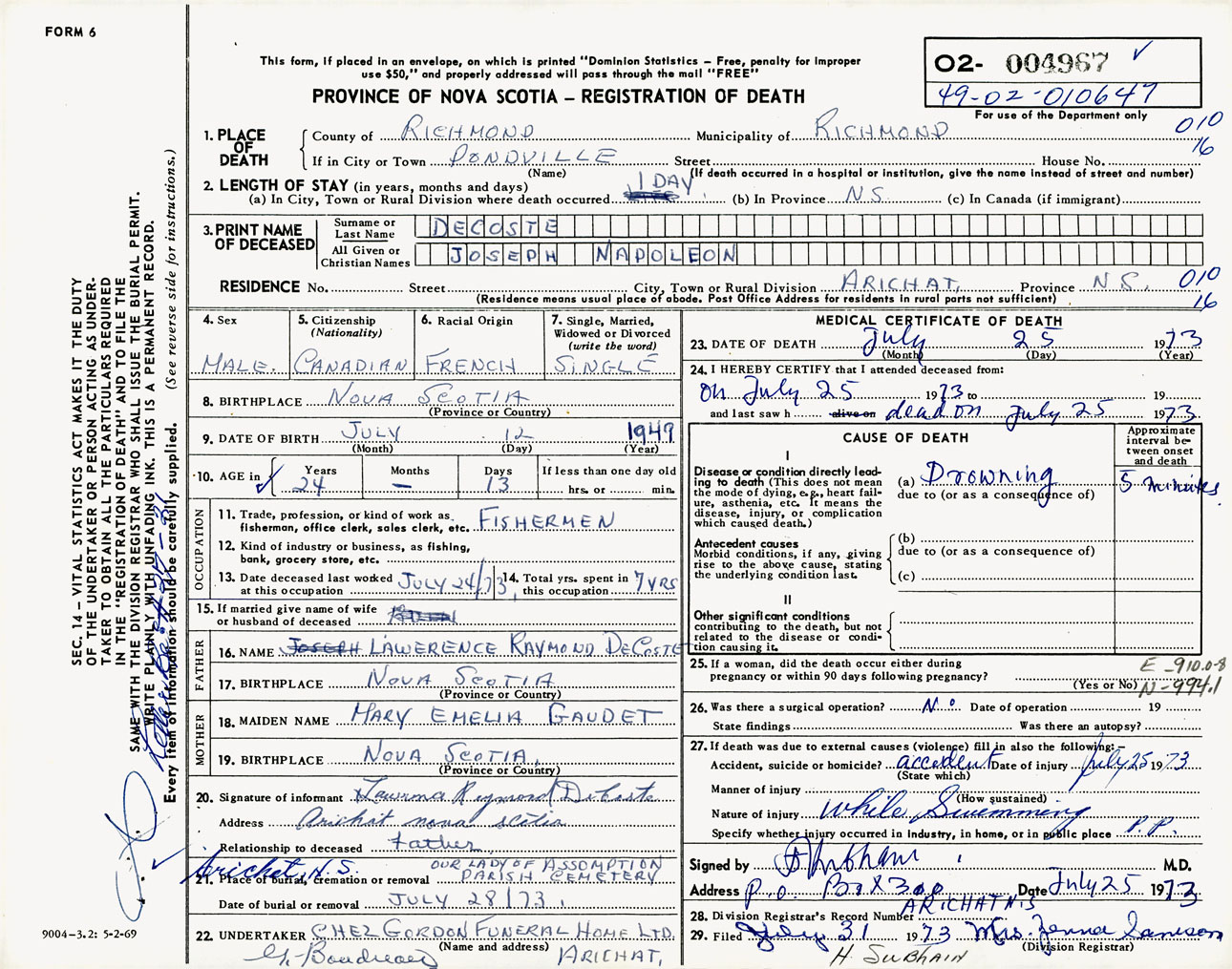 Male Death Registration: Year: 1973 number: 4967