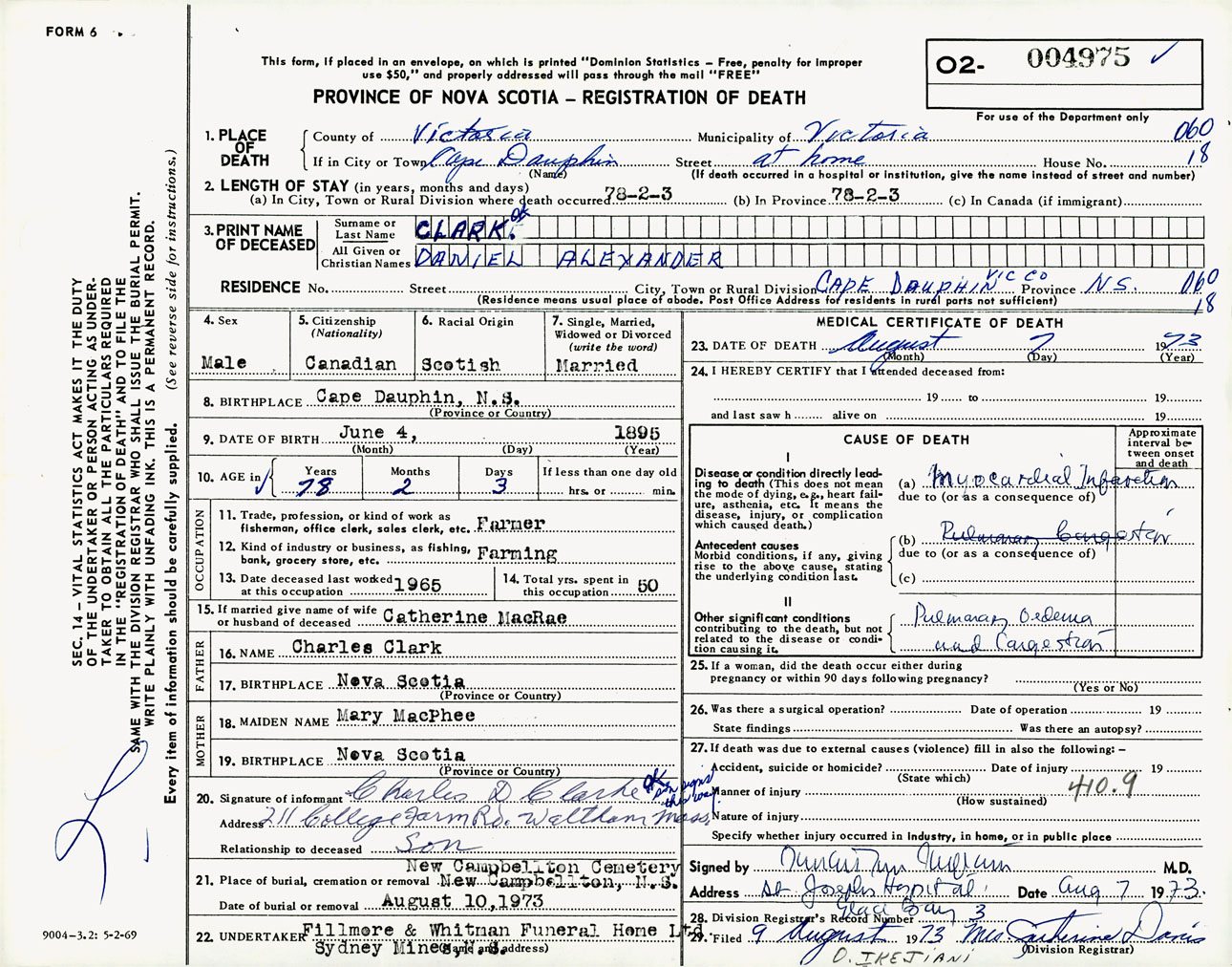 Male Death Registration: Year: 1973 number: 4975
