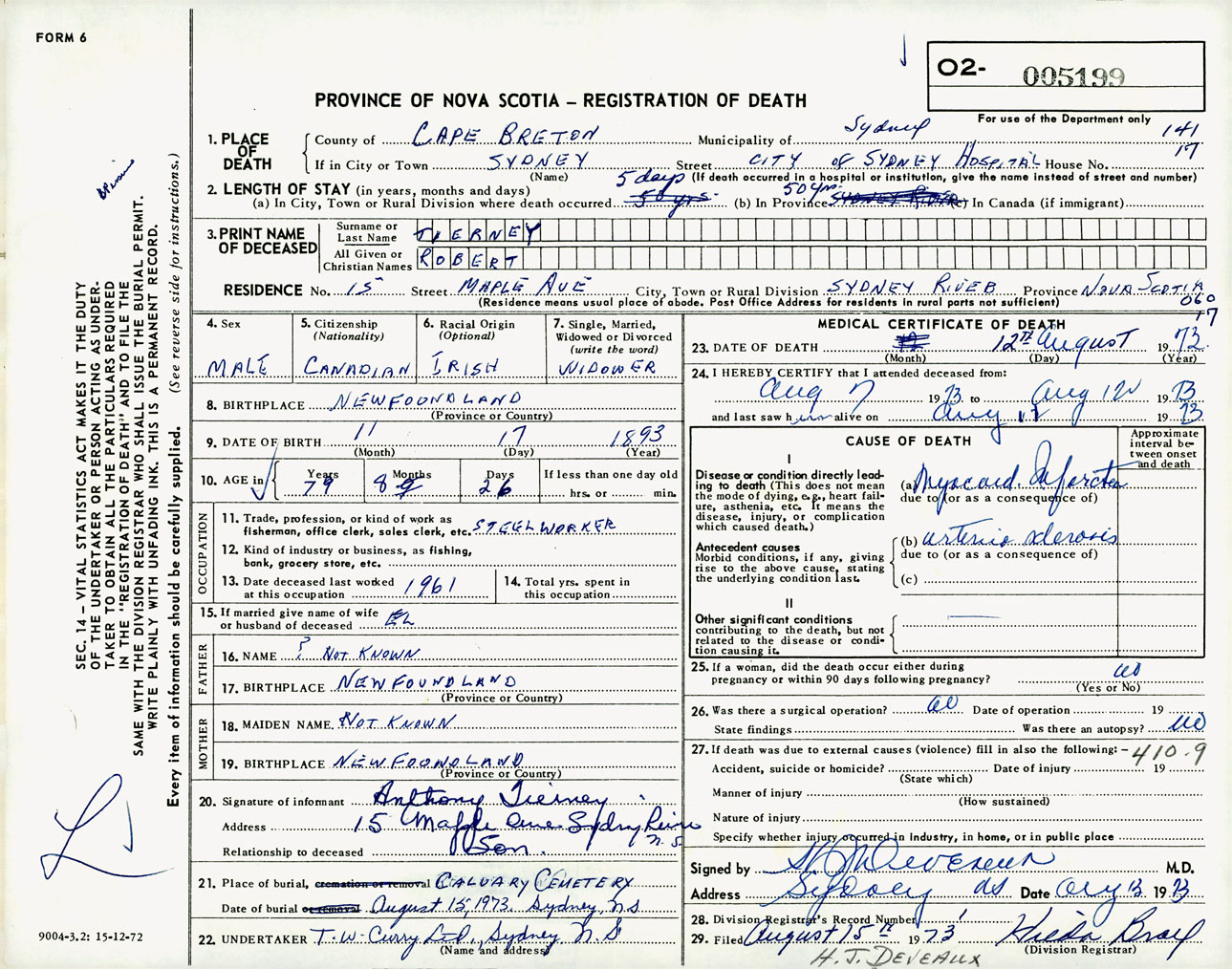 Male Death Registration: Year: 1973 number: 5199