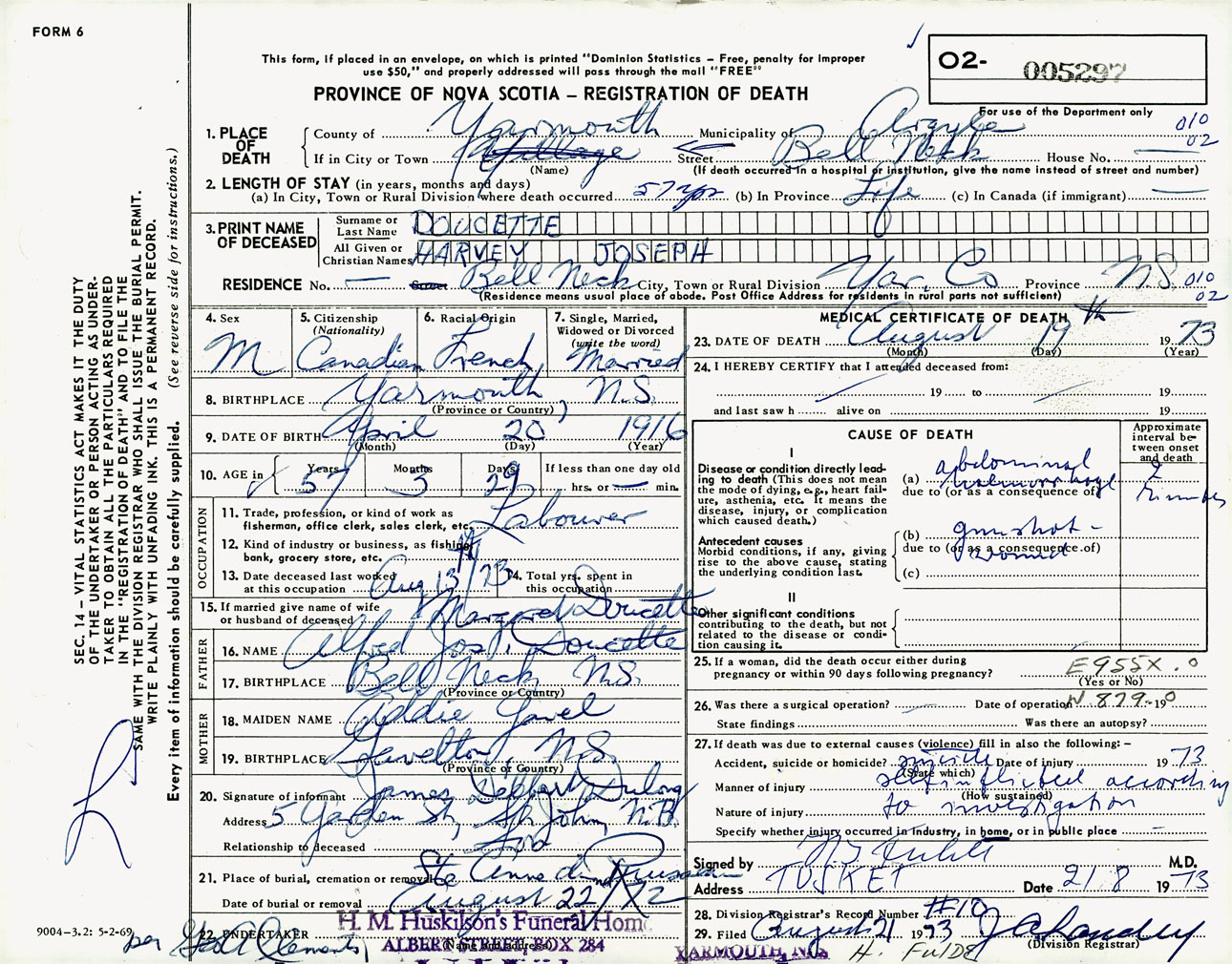 Male Death Registration: Year: 1973 number: 5297