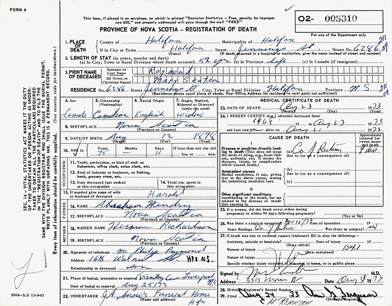 Nova Scotia Archives — https://archives.novascotia.ca/vital-statistics/death/?ID=511137