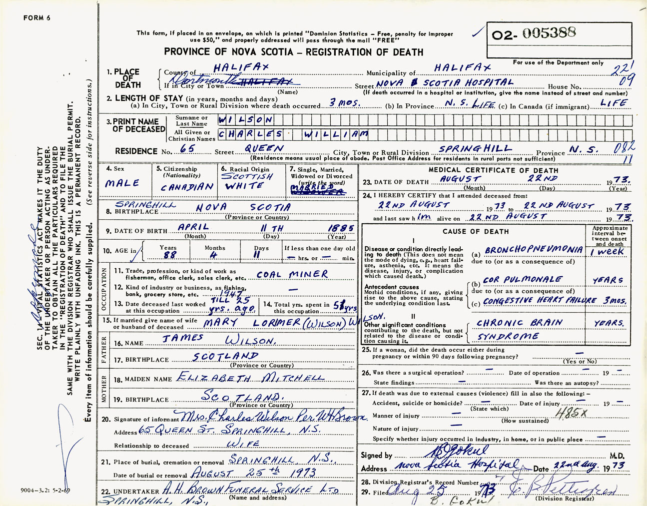 Male Death Registration: Year: 1973 number: 5388