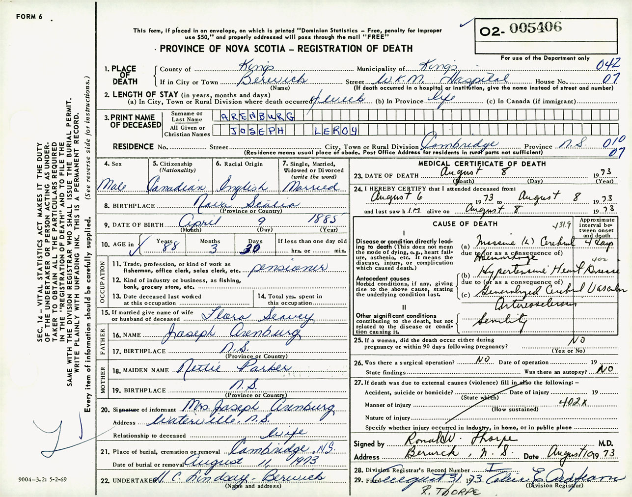 Male Death Registration: Year: 1973 number: 5406