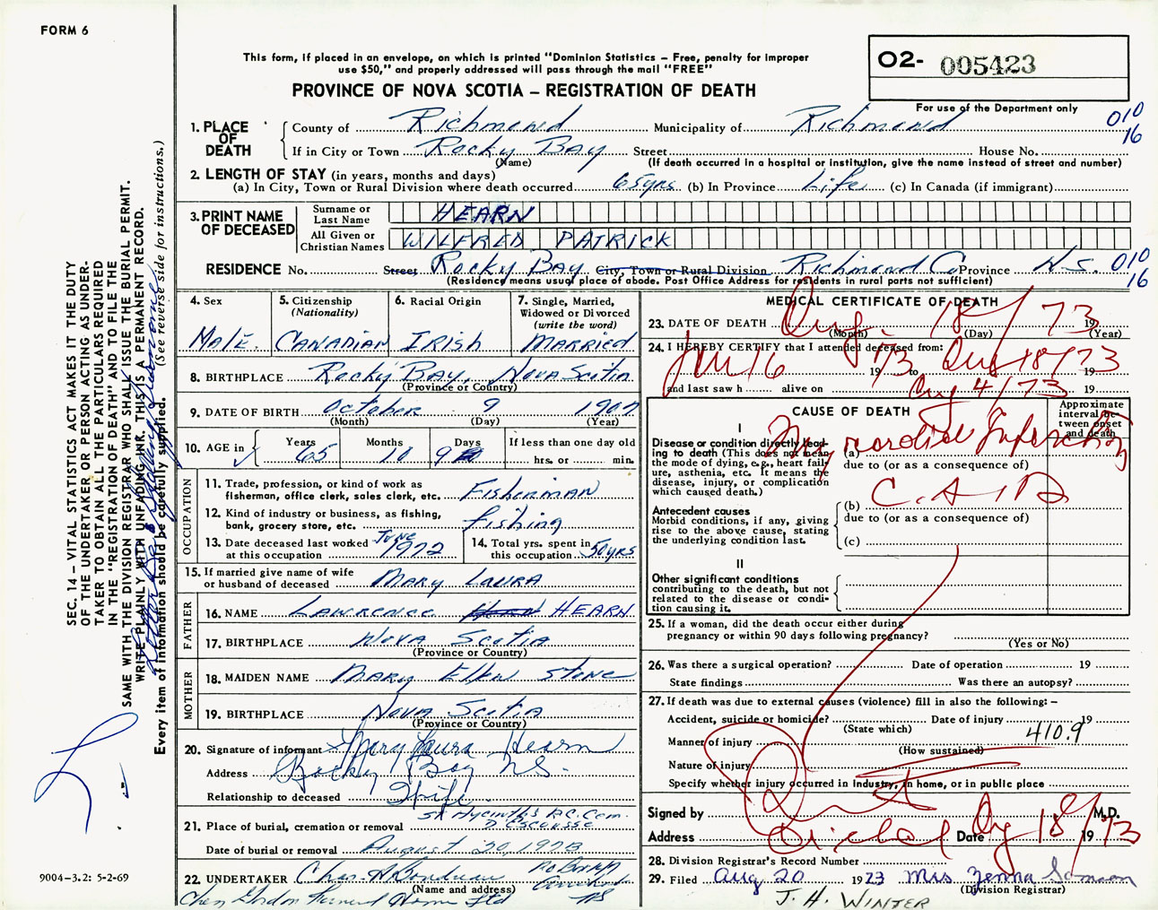 Male Death Registration: Year: 1973 number: 5423