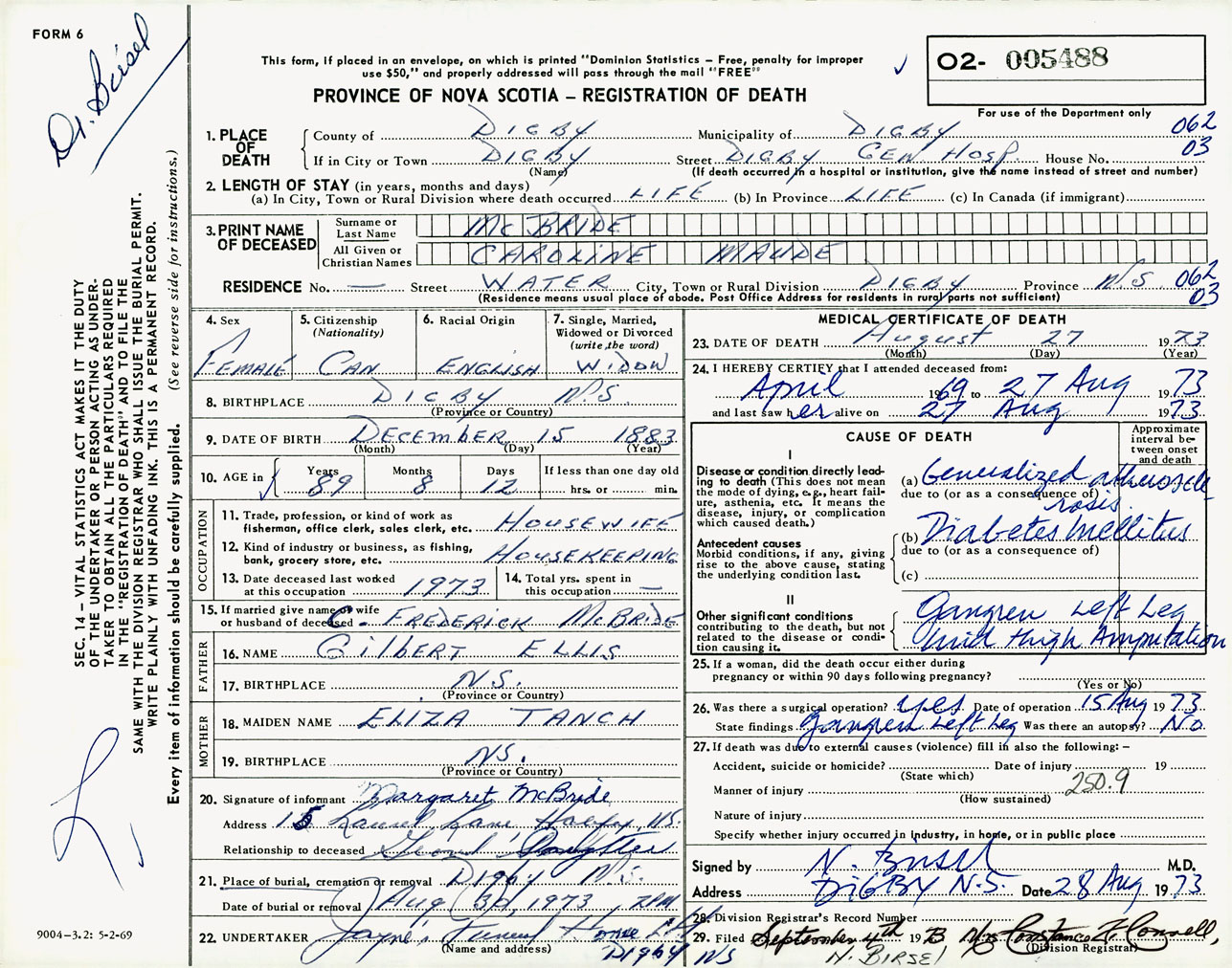 Female Death Registration: Year: 1973 number: 5488