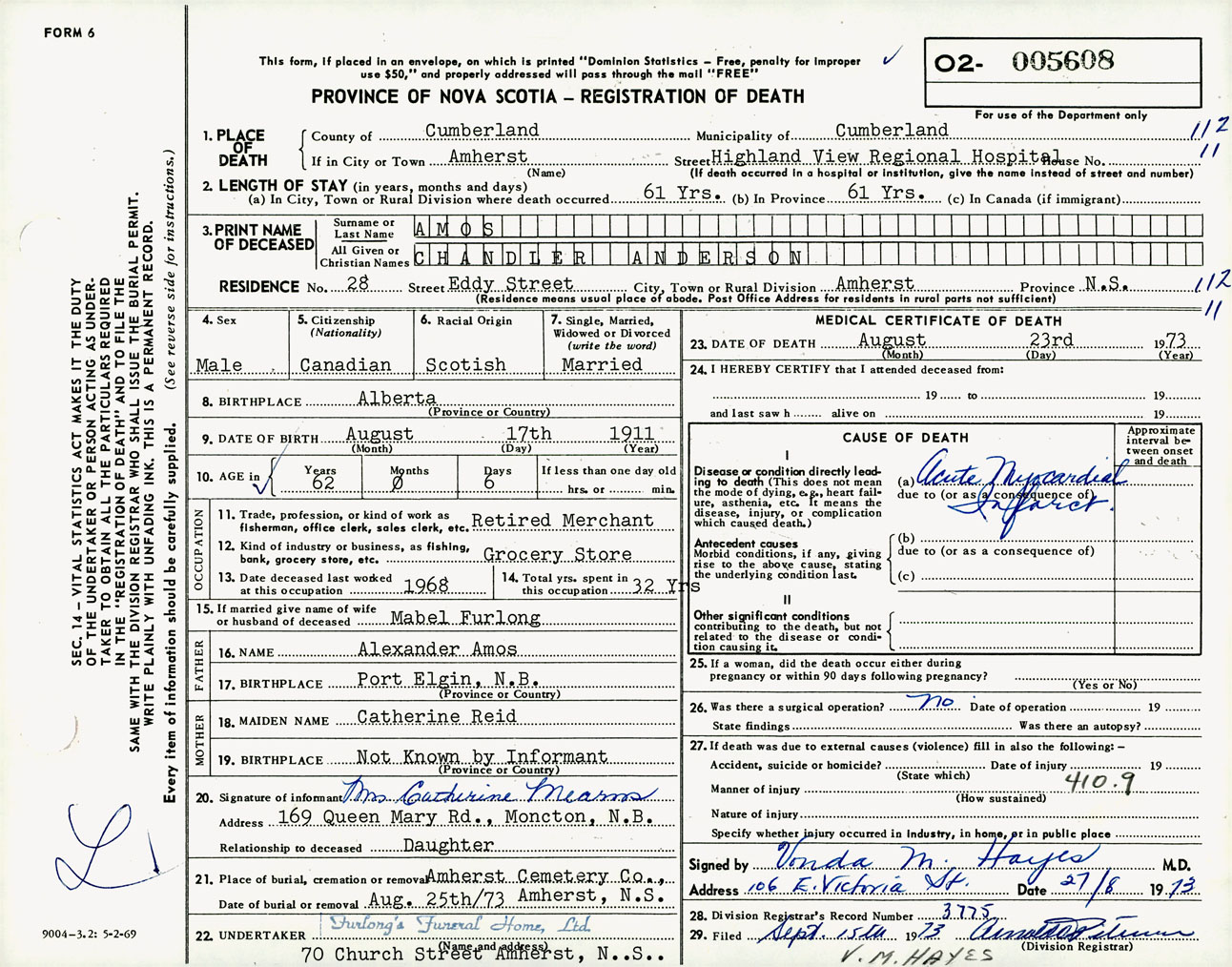 Male Death Registration: Year: 1973 number: 5608