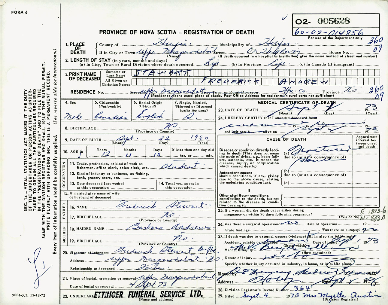 Male Death Registration: Year: 1973 number: 5628
