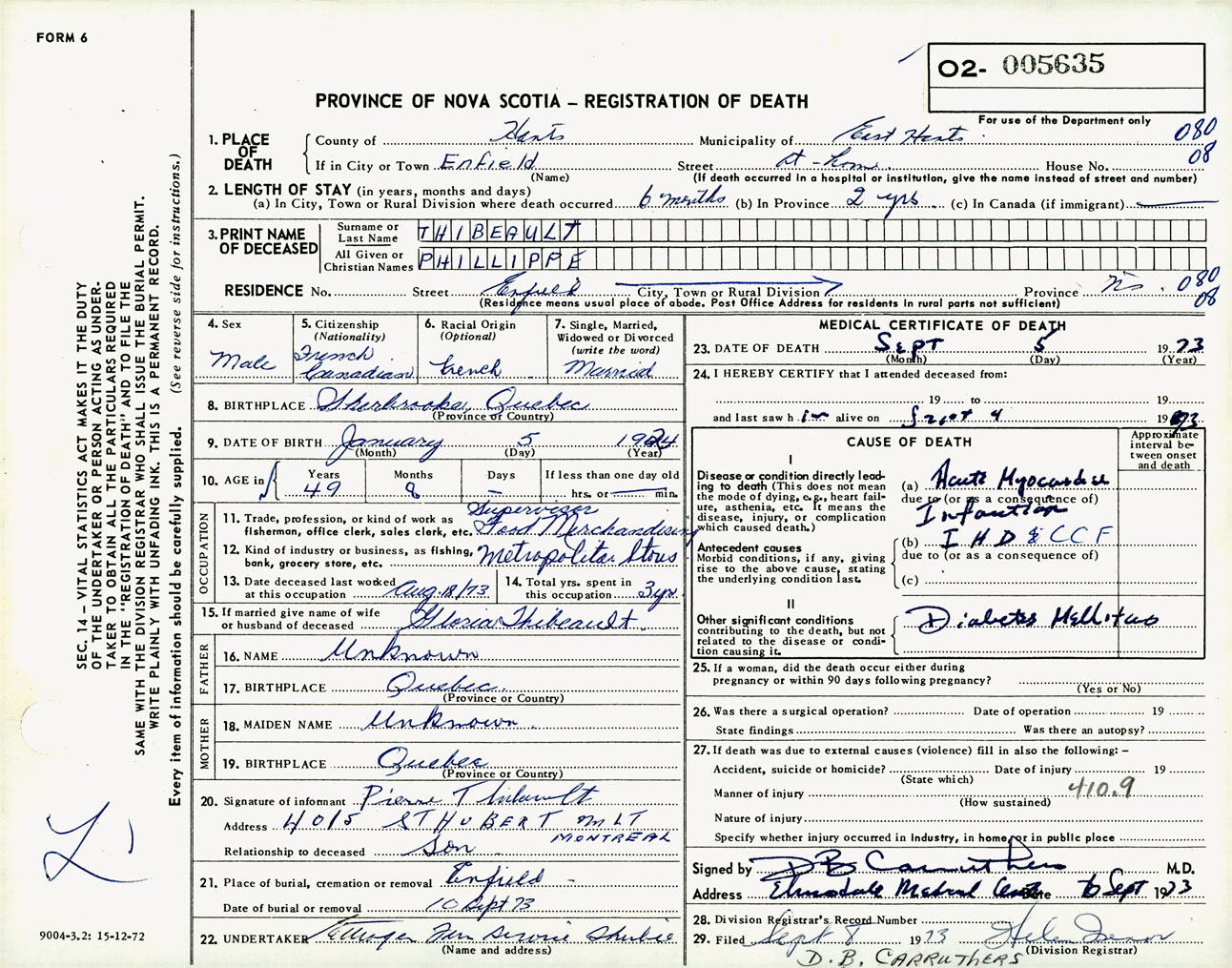 Male Death Registration: Year: 1973 number: 5635