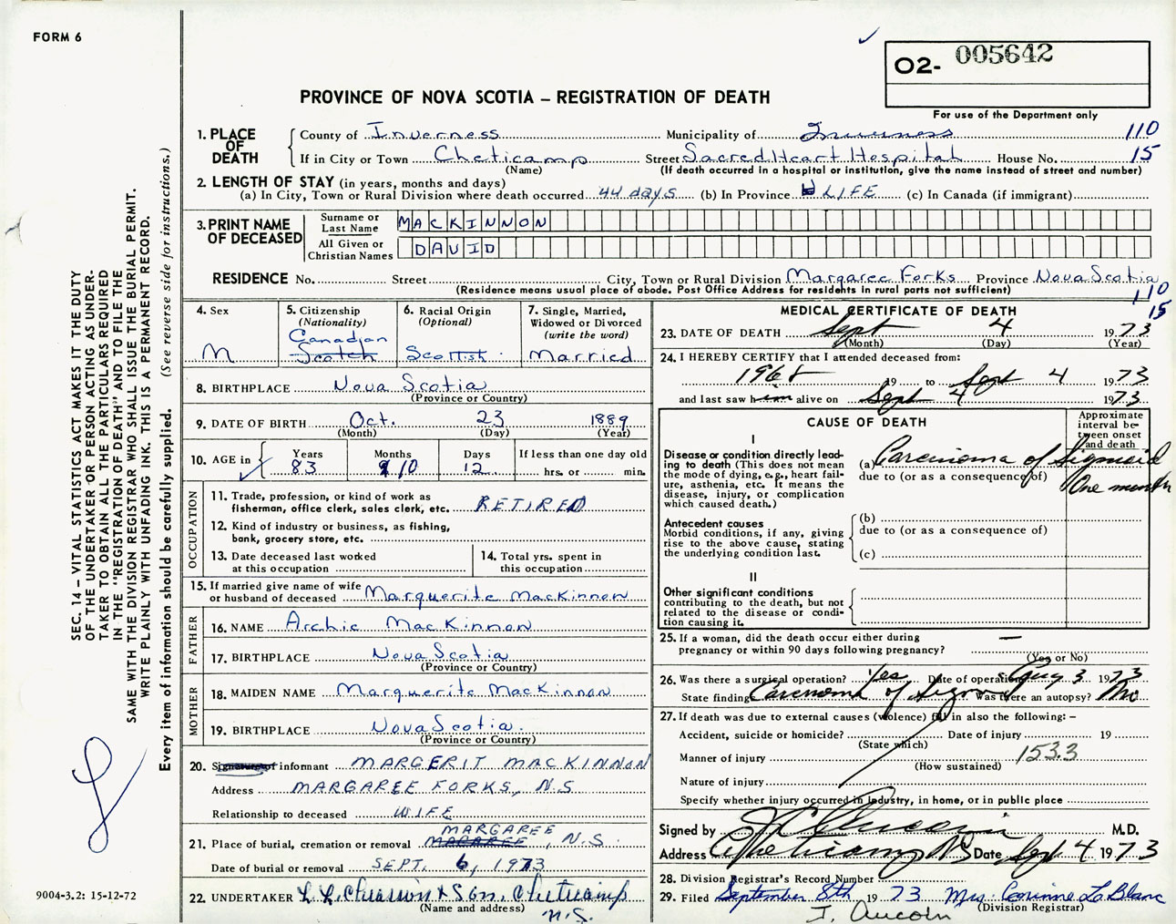 Male Death Registration: Year: 1973 number: 5642