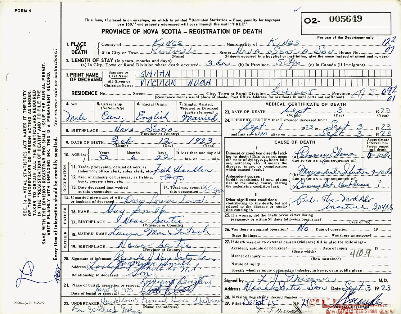 Male Death Registration: Year: 1973 number: 5649