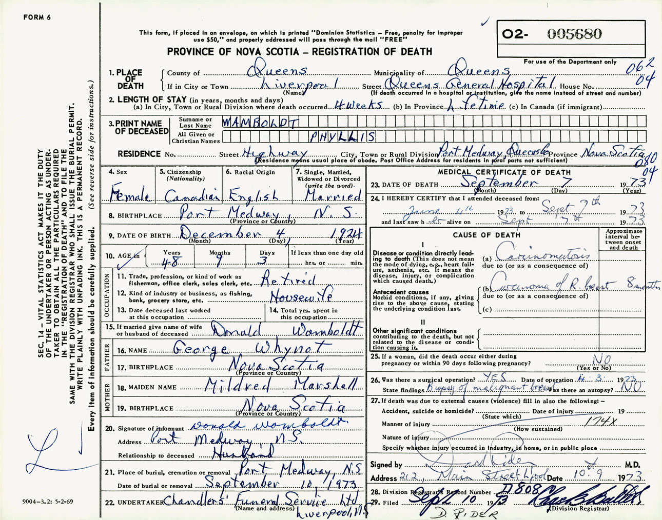 Female Death Registration: Year: 1973 number: 5680