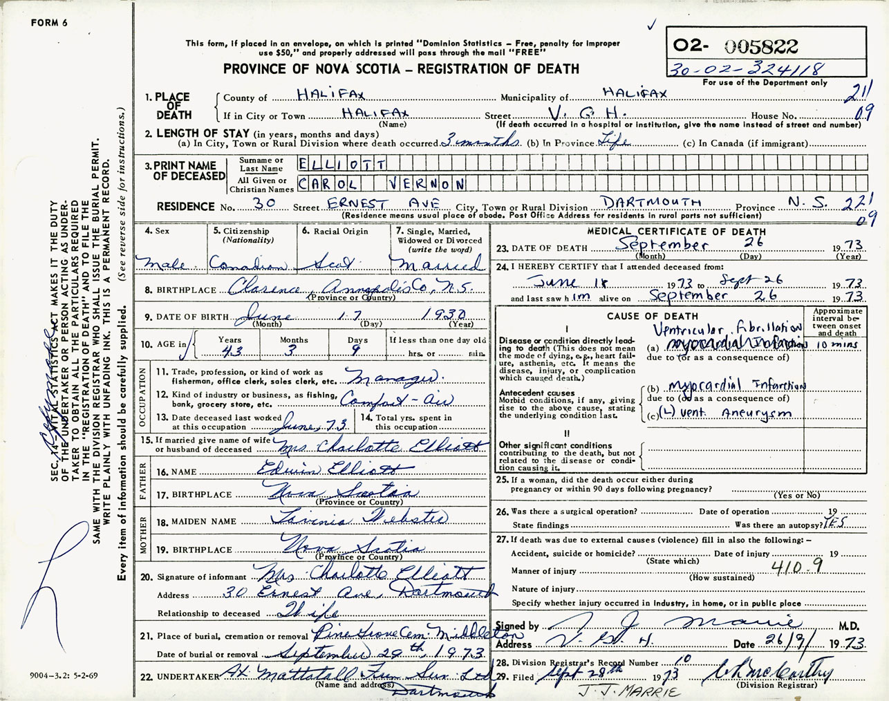 Male Death Registration: Year: 1973 number: 5822