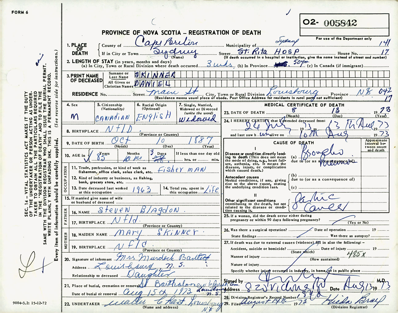 Male Death Registration: Year: 1973 number: 5842