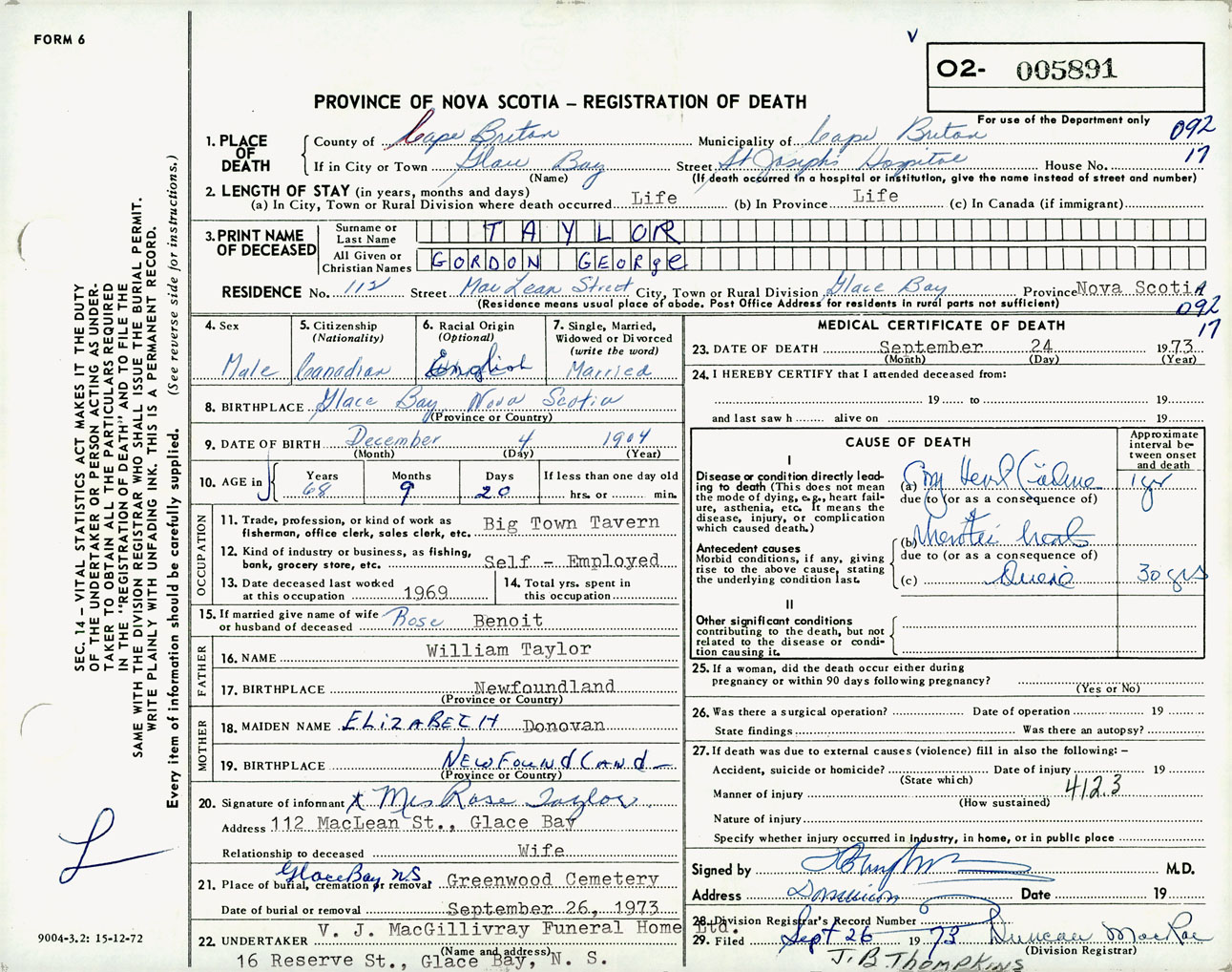 Male Death Registration: Year: 1973 number: 5891