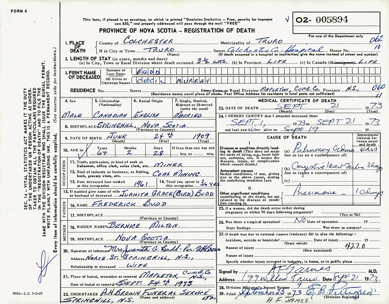 Male Death Registration: Year: 1973 number: 5894