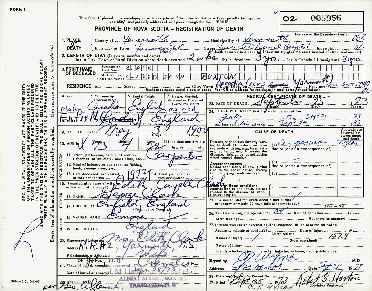 Male Death Registration: Year: 1973 number: 5956