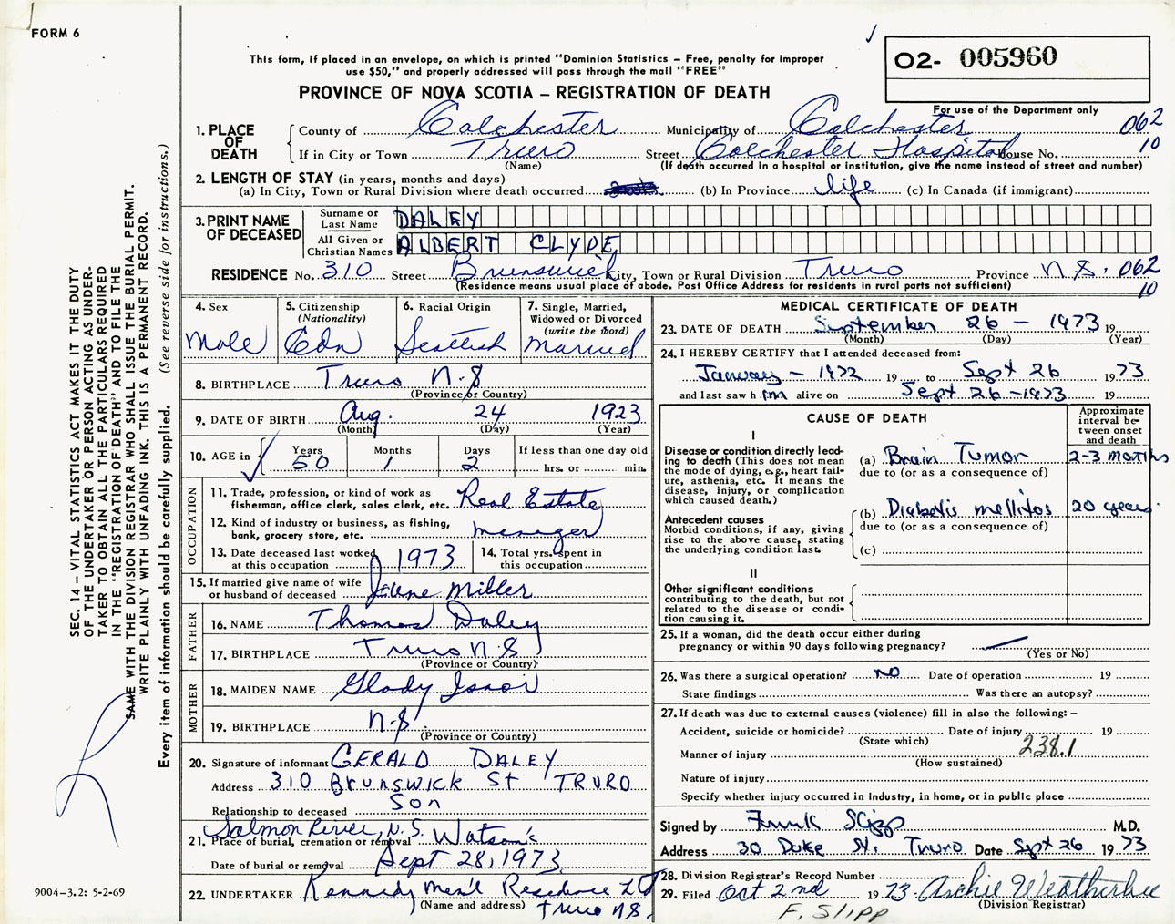 Male Death Registration: Year: 1973 number: 5960