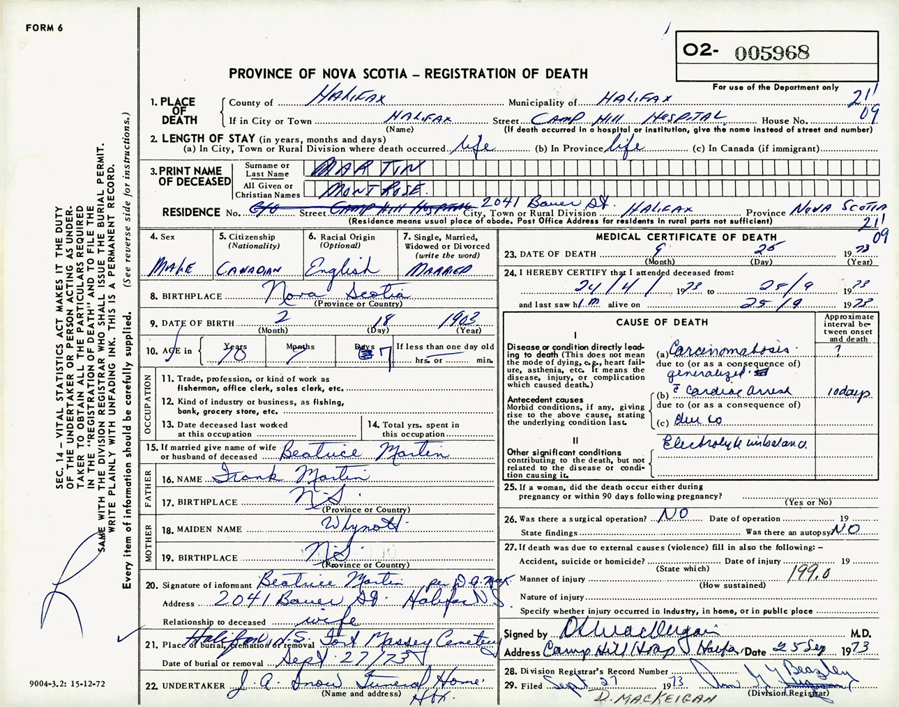 Male Death Registration: Year: 1973 number: 5968
