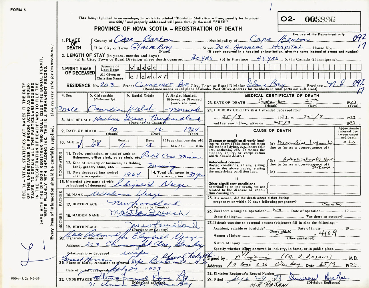 Male Death Registration: Year: 1973 number: 5996