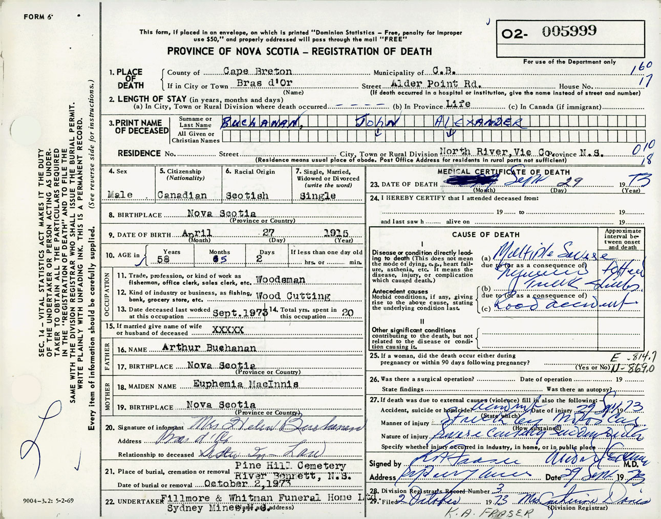 Male Death Registration: Year: 1973 number: 5999