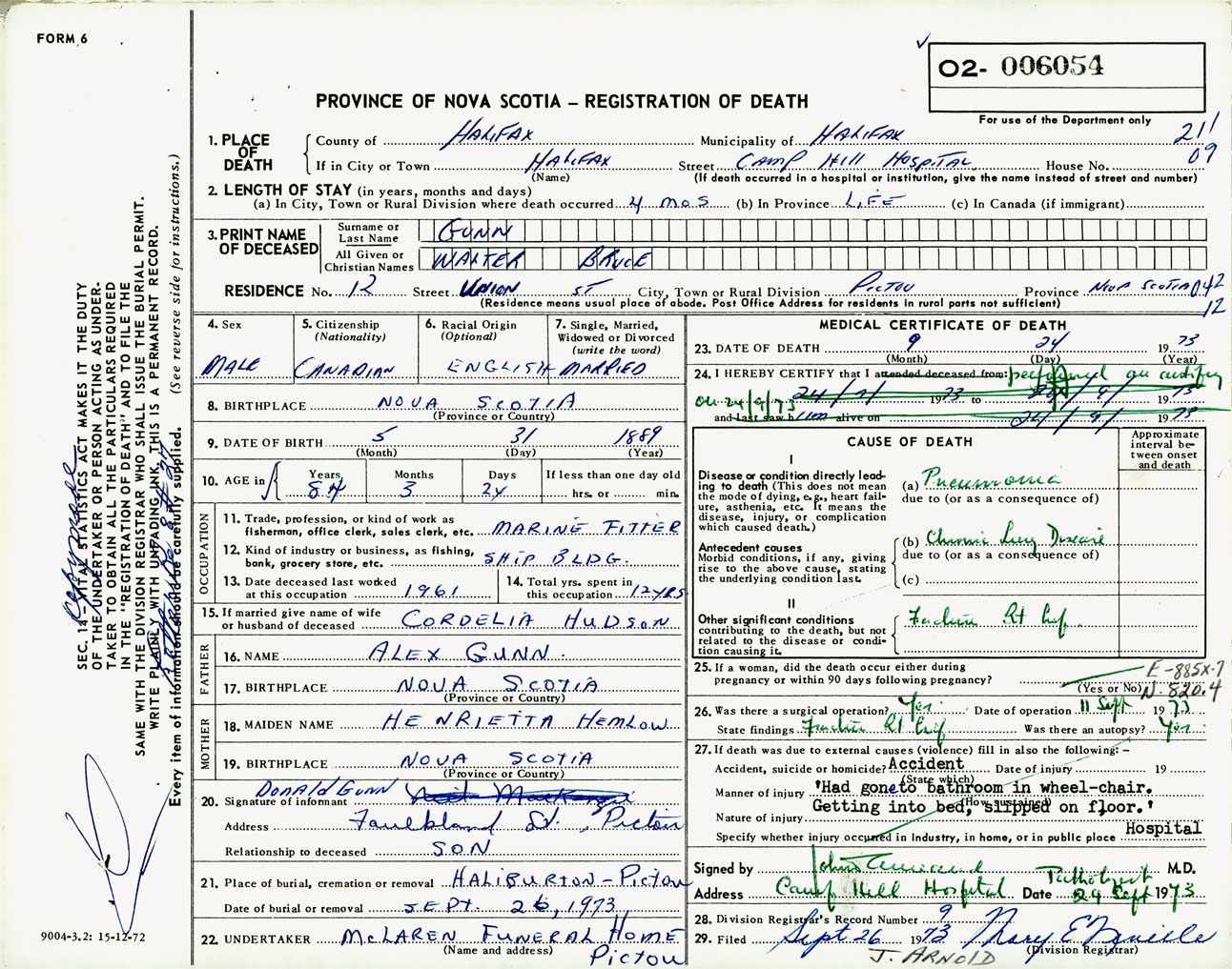 Male Death Registration: Year: 1973 number: 6054