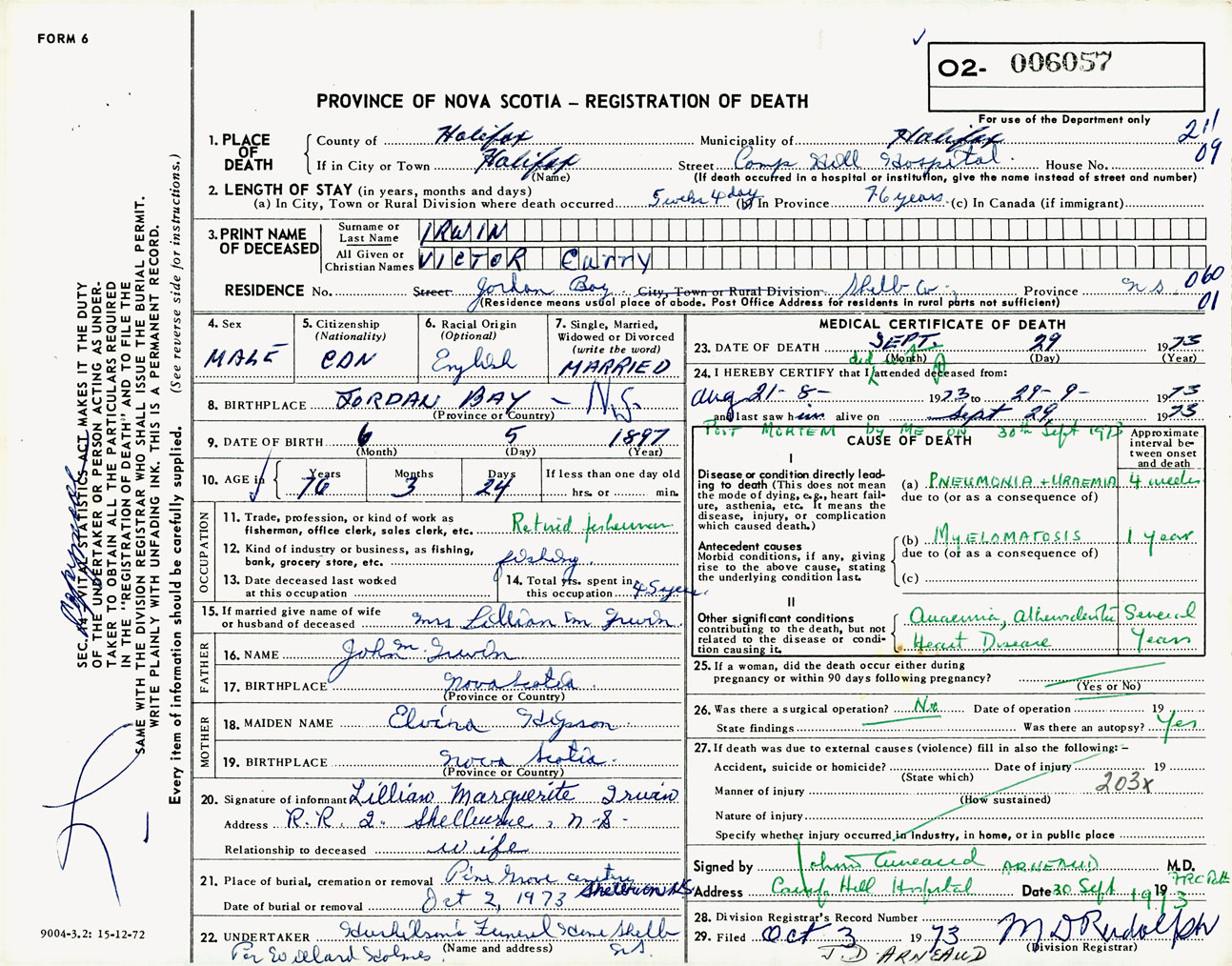 Male Death Registration: Year: 1973 number: 6057