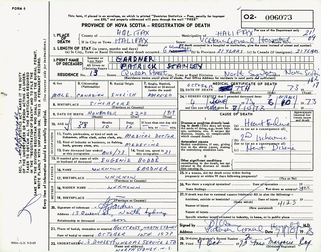 Male Death Registration: Year: 1973 number: 6073