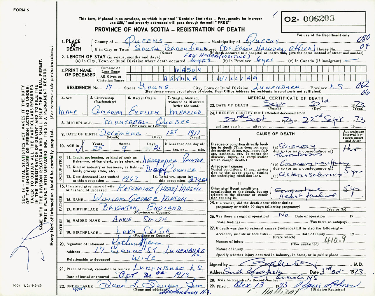Male Death Registration: Year: 1973 number: 6203
