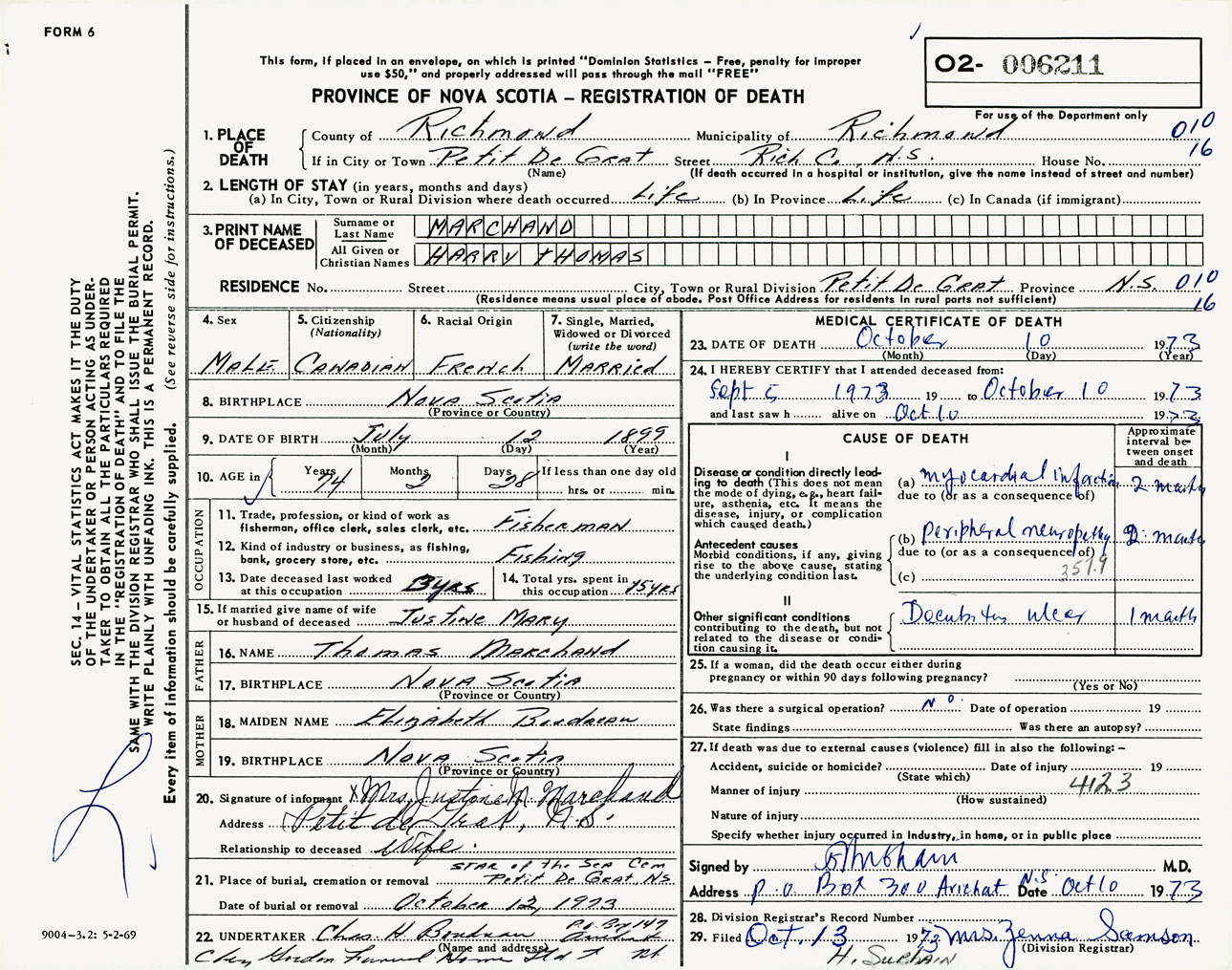 Male Death Registration: Year: 1973 number: 6211
