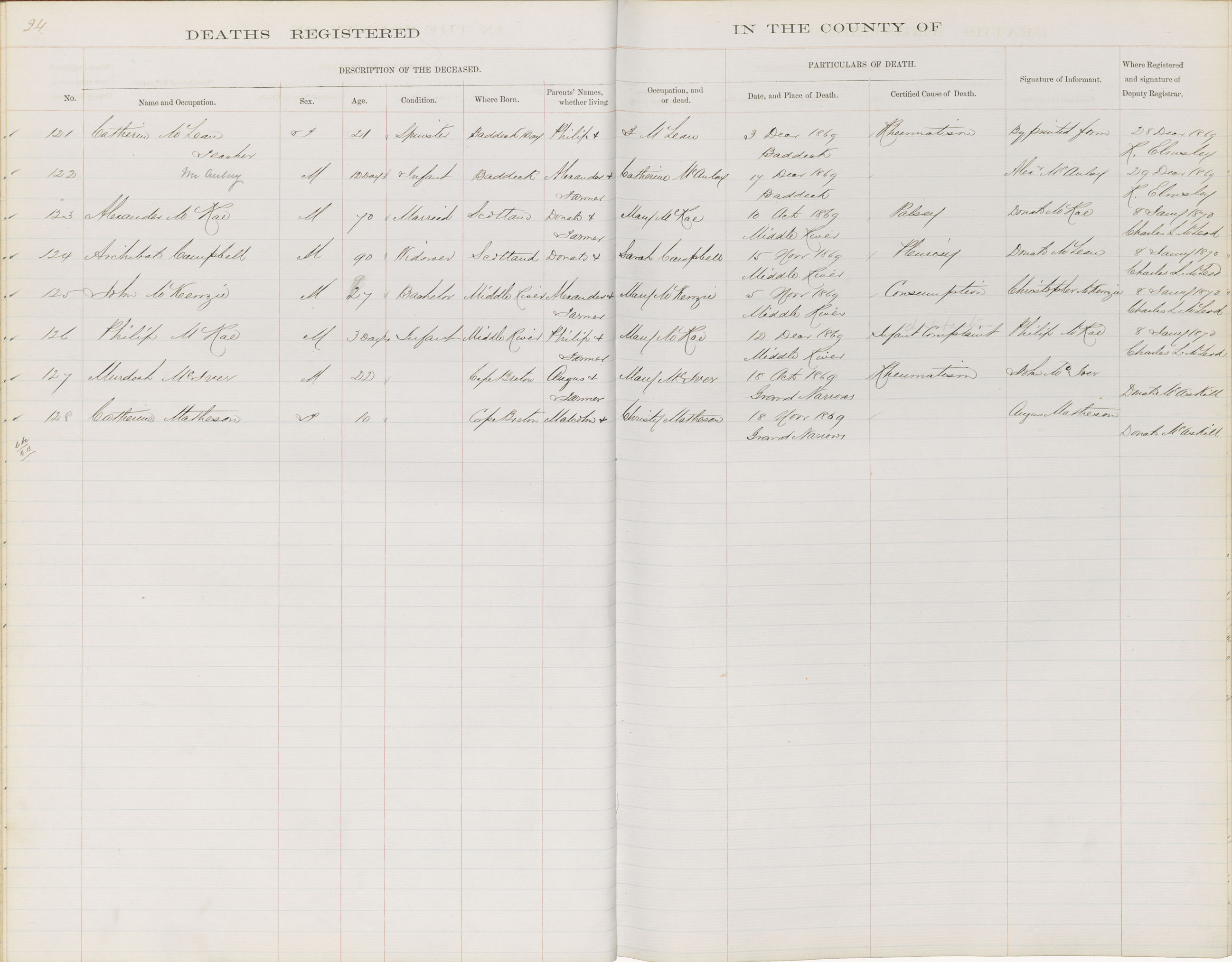 Female Death Registration: Year: 1869 book: 1817 page: 24 number: 128