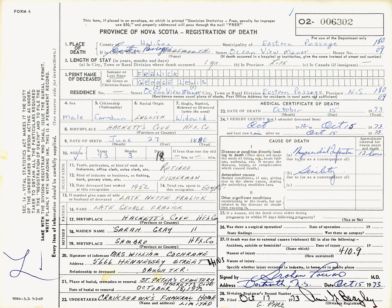 Male Death Registration: Year: 1973 number: 6302