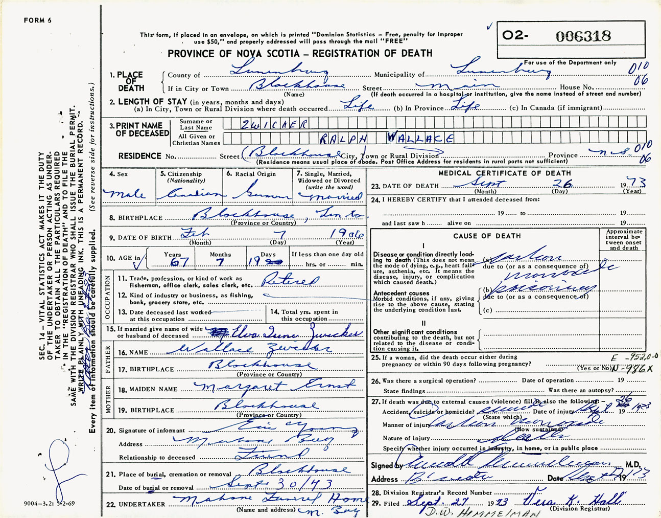 Male Death Registration: Year: 1973 number: 6318
