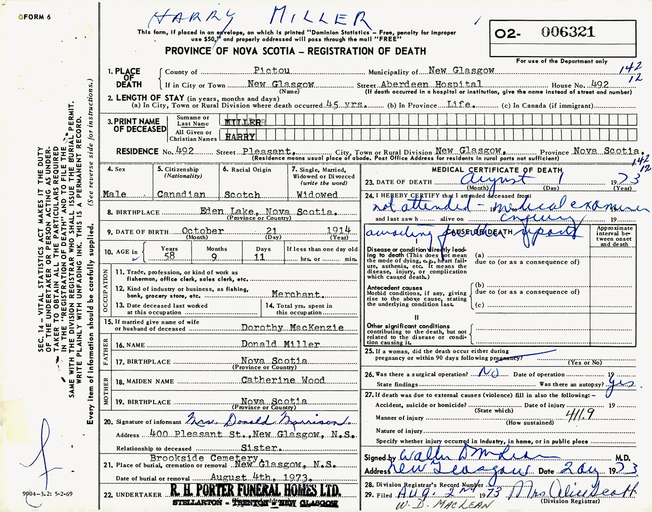 Male Death Registration: Year: 1973 number: 6321