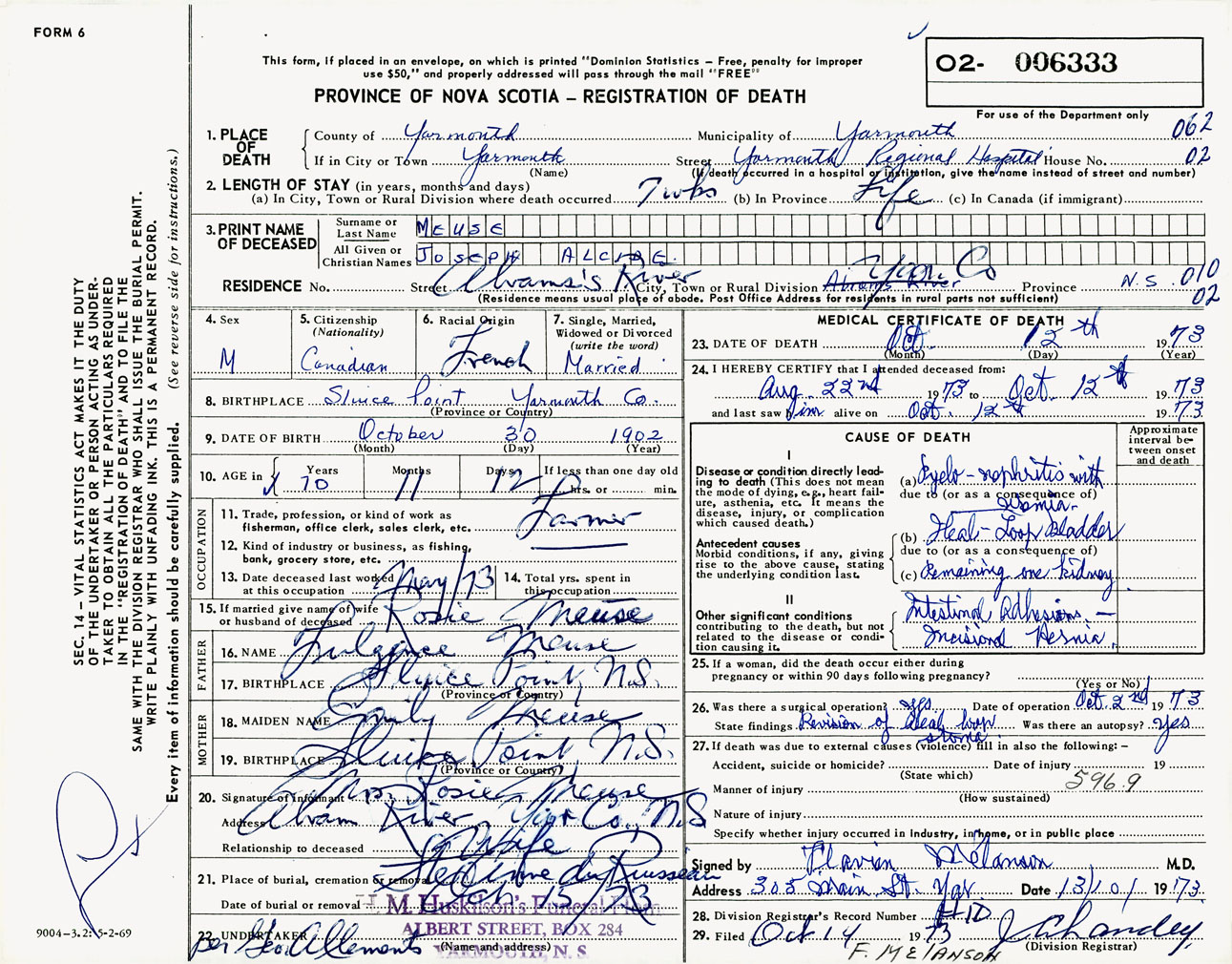 Male Death Registration: Year: 1973 number: 6333