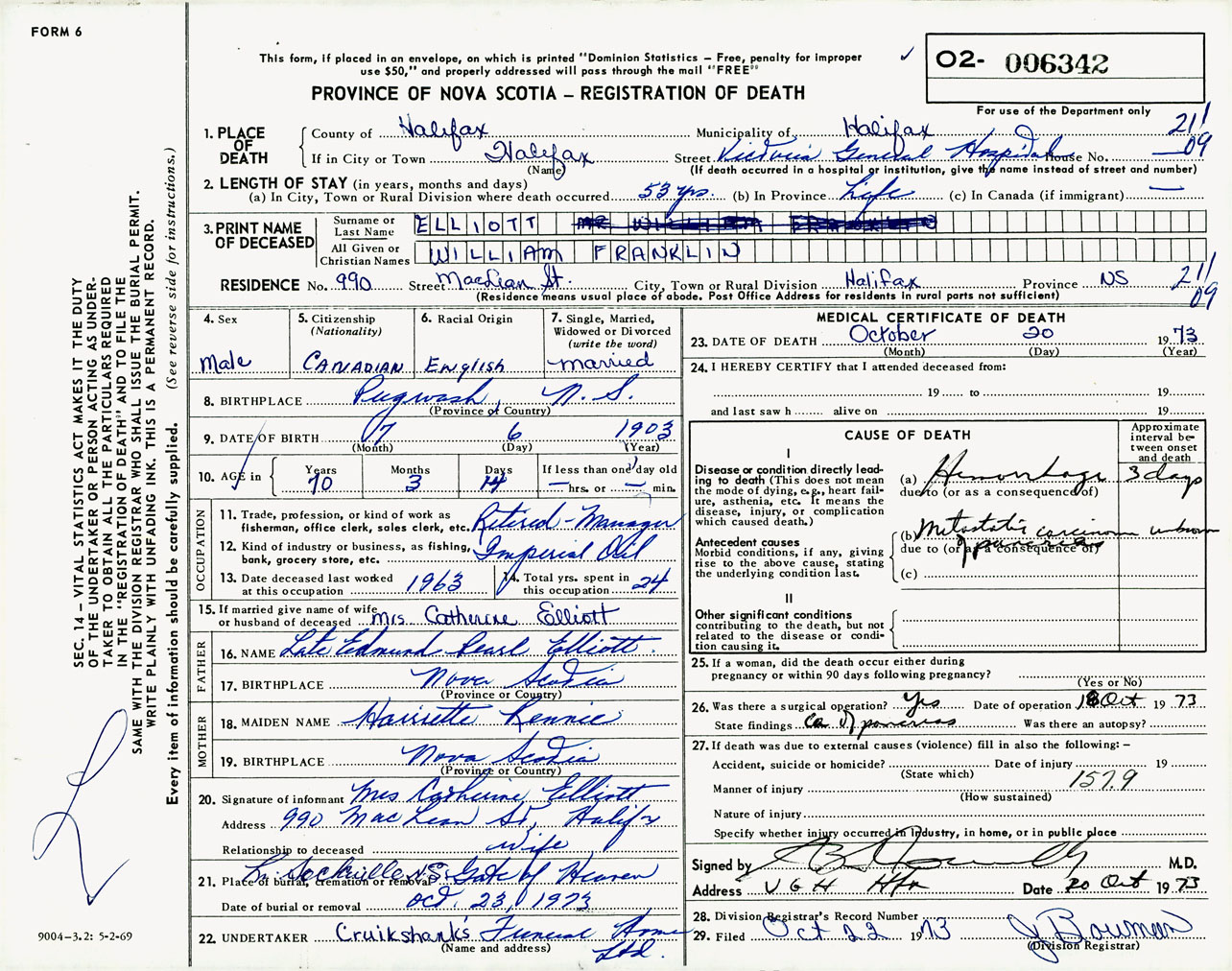 Male Death Registration: Year: 1973 number: 6342