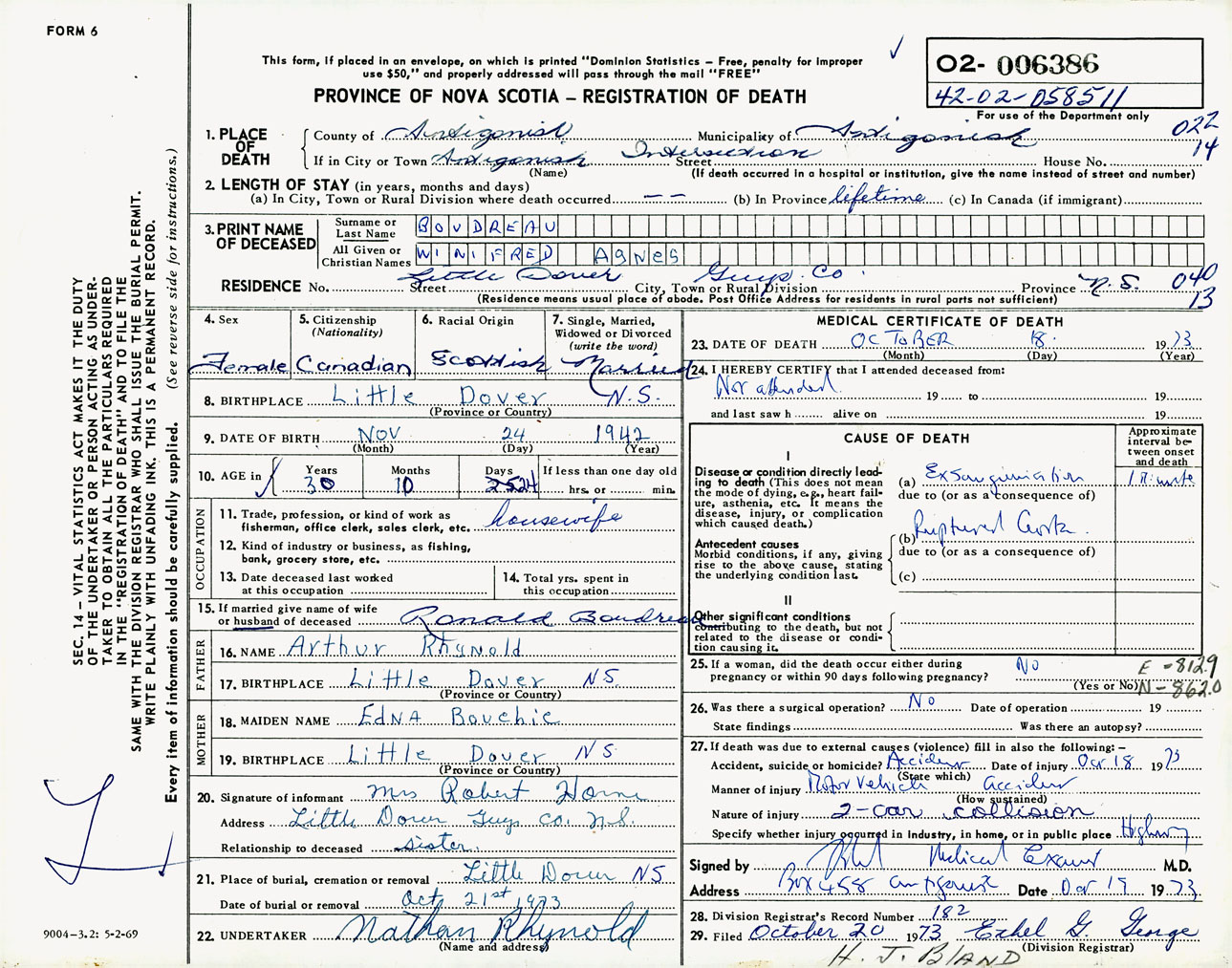 Female Death Registration: Year: 1973 number: 6386