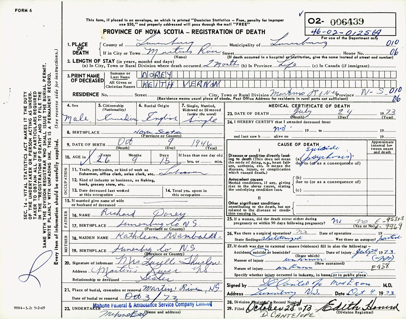 Male Death Registration: Year: 1973 number: 6439