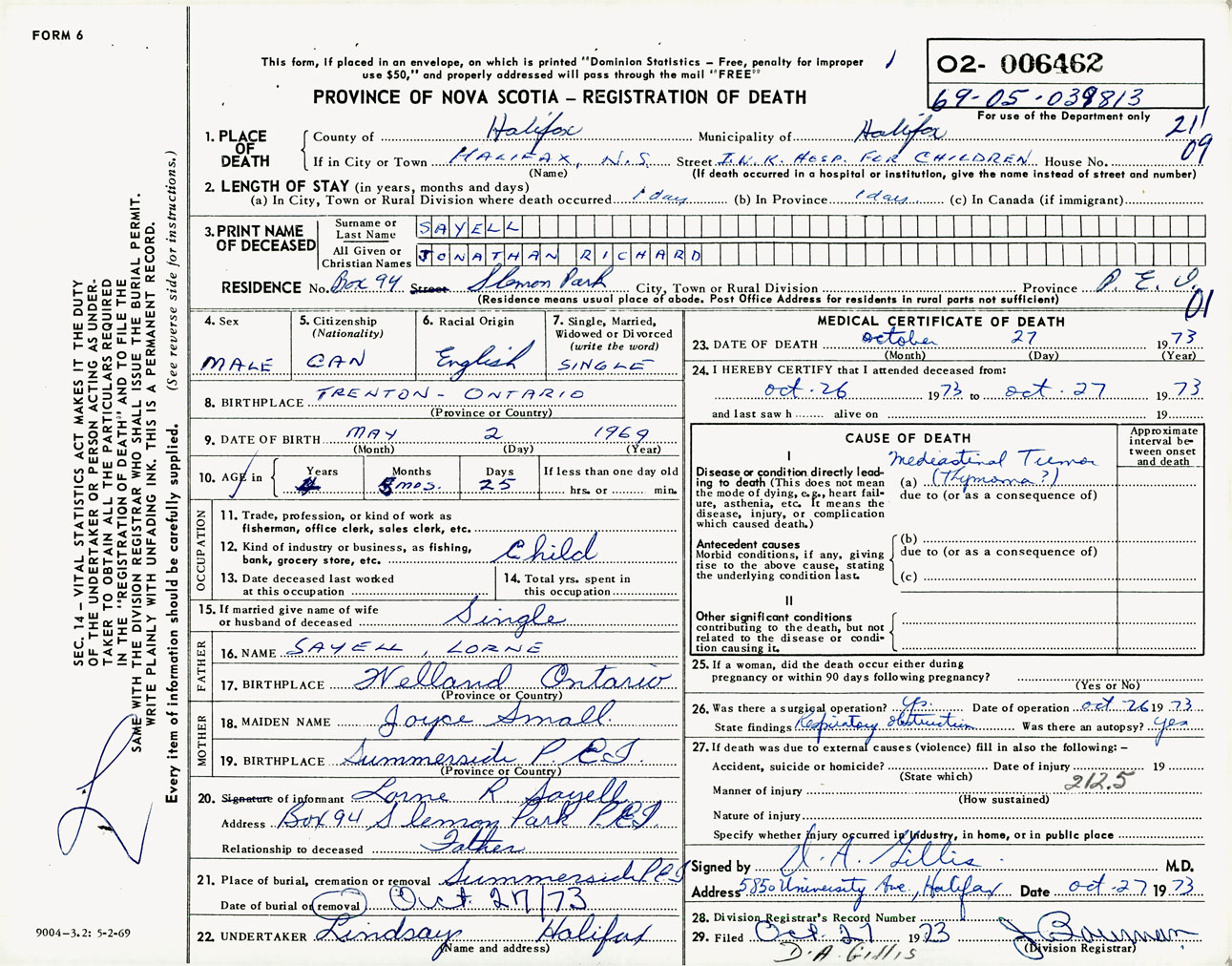 Male Death Registration: Year: 1973 number: 6462