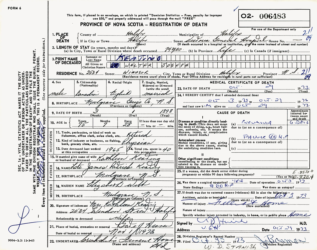 Male Death Registration: Year: 1973 number: 6483