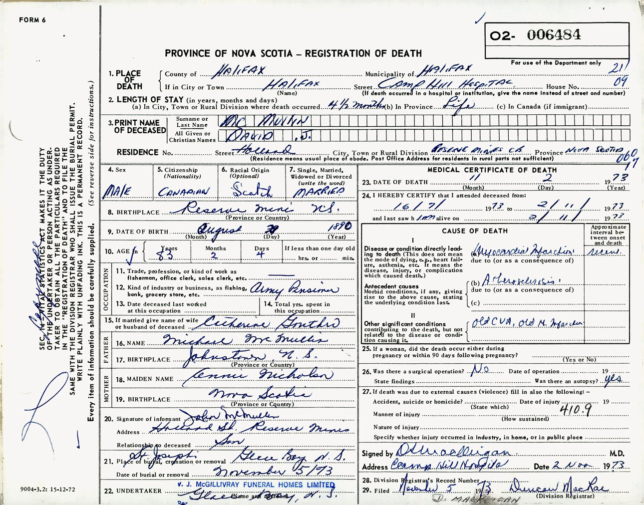 Male Death Registration: Year: 1973 number: 6484