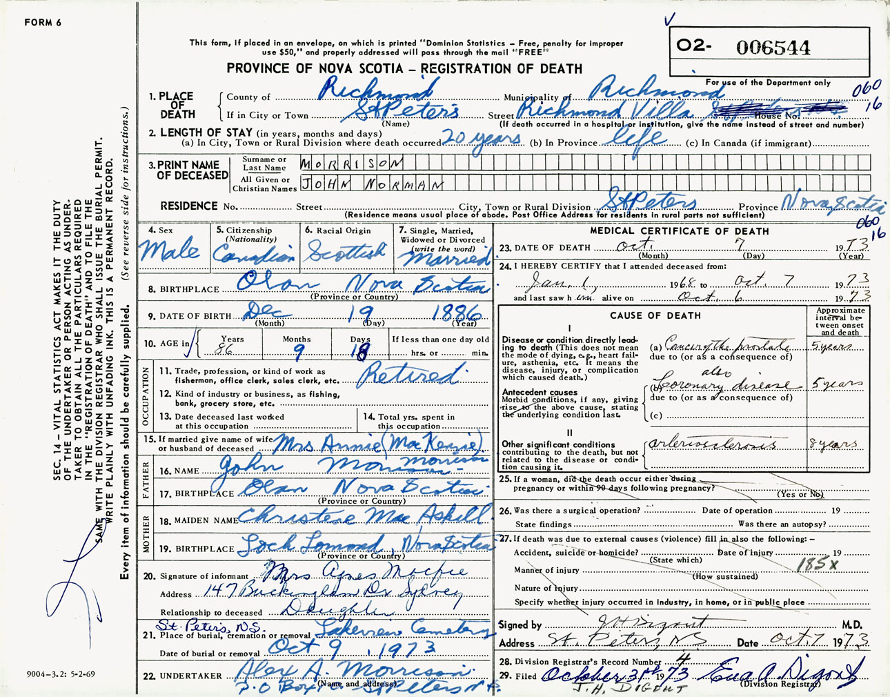 Male Death Registration: Year: 1973 number: 6544